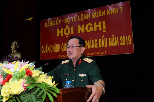 Đánh giá thực hiện nhiệm vụ quân sự, quốc phòng và xây dựng Đảng bộ Quân khu, Trung tướng Trần Hoài Trung, Bí thư Đảng ủy, Chính ủy Quân khu nêu bật một số kết quả: 6 tháng đầu năm 2019, Quân khu 7 đã tích cực chủ động tham mưu giúp Quân ủy Trung ương, Bộ Quốc phòng nắm chắc tình hình nội địa, biên giới, biển đảo, ngoại biên, chỉ đạo phối hợp xử lý tốt các tình huống không để bị động bất ngờ, giữ vững an ninh chính trị, tạo điều kiện thuận lợi để phát triển kinh tế, xã hội. Lãnh đạo thực hiện tốt kế hoạch giáo dục chính trị, khoa học xã hội và nhân văn, phổ biến pháp luật cho các đối tượng, triển khai thực hiện “Mỗi ngày một lời Bác Hồ dạy”, mô hình thi đua “Đơn vị 3 nhất” và mô hình “Cán bộ đảng viên dìu dắt quần chúng và cấp dưới” sát với đặc điểm của đơn vị, địa phương được Bộ Quốc phòng biểu dương và đề nghị nhân rộng đến các đơn vị trong toàn quân.