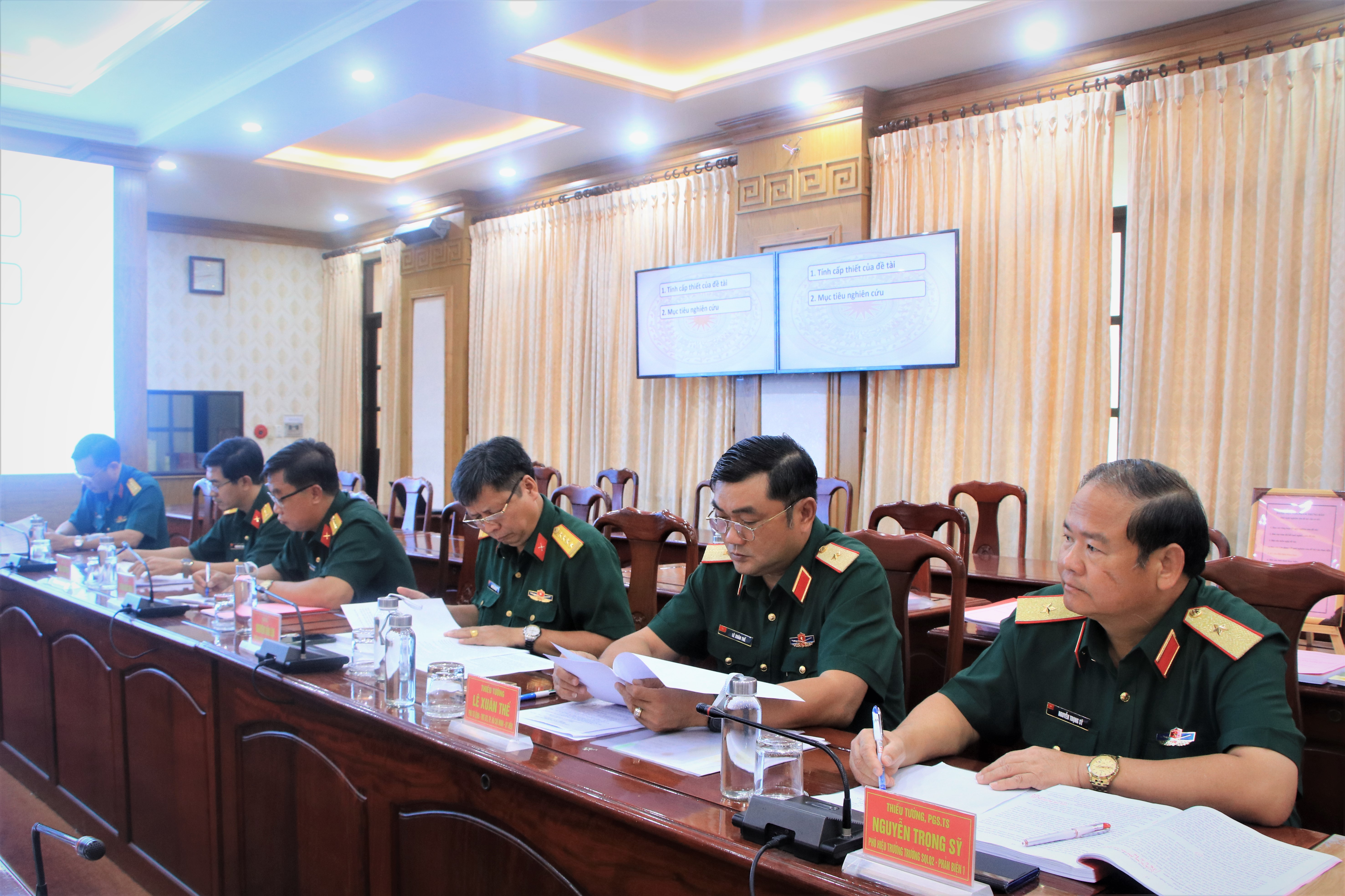 Thiếu tướng, Phó Giáo sư, Tiến sĩ Trần Văn Thành, Phó Giám đốc Học viện Lục quân, Chủ tịch Hội đồng và các thành viên cùng đại biểu các cơ quan, đơn vị Bộ Quốc phòng, Quân khu 7 tham dự buổi đánh giá.