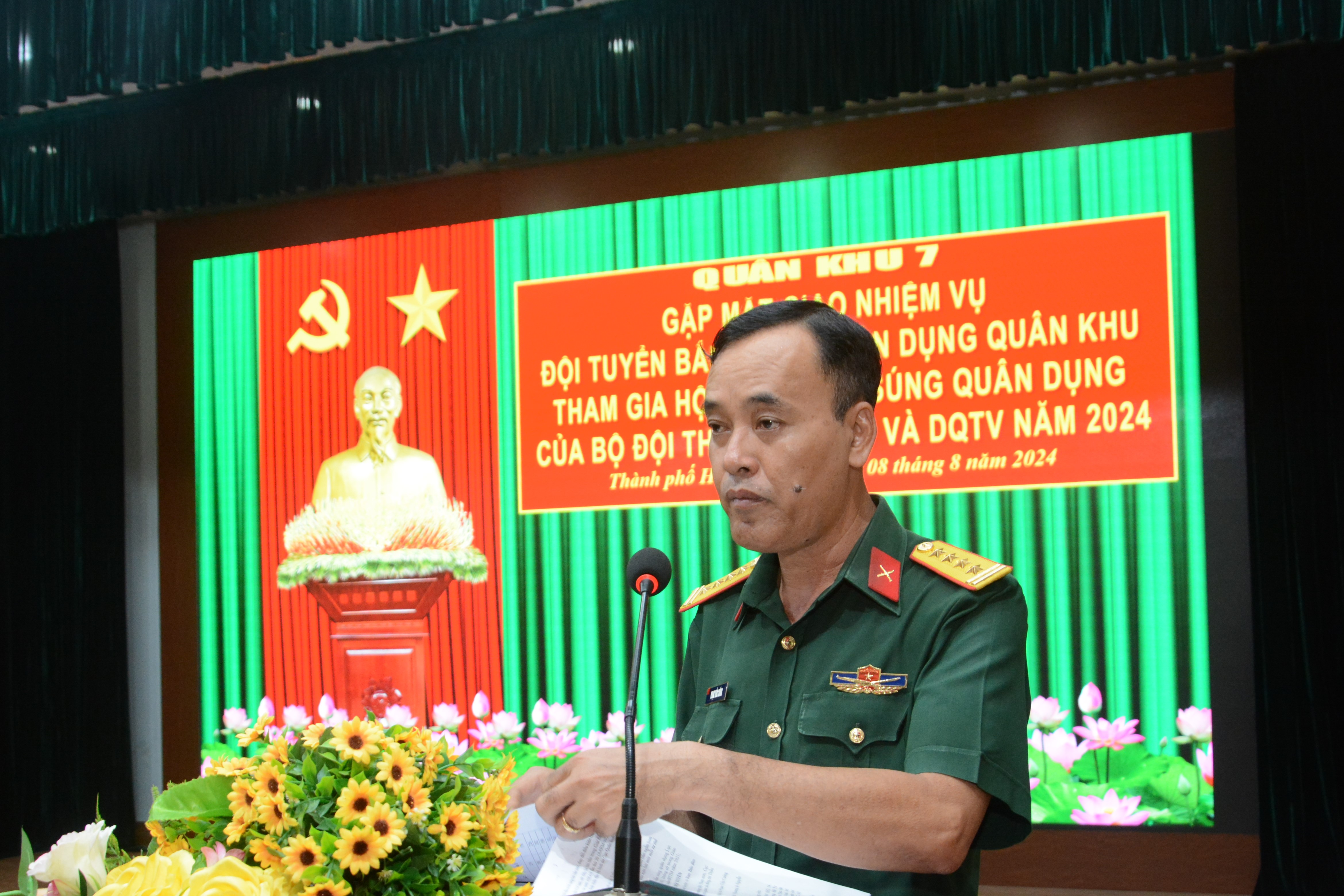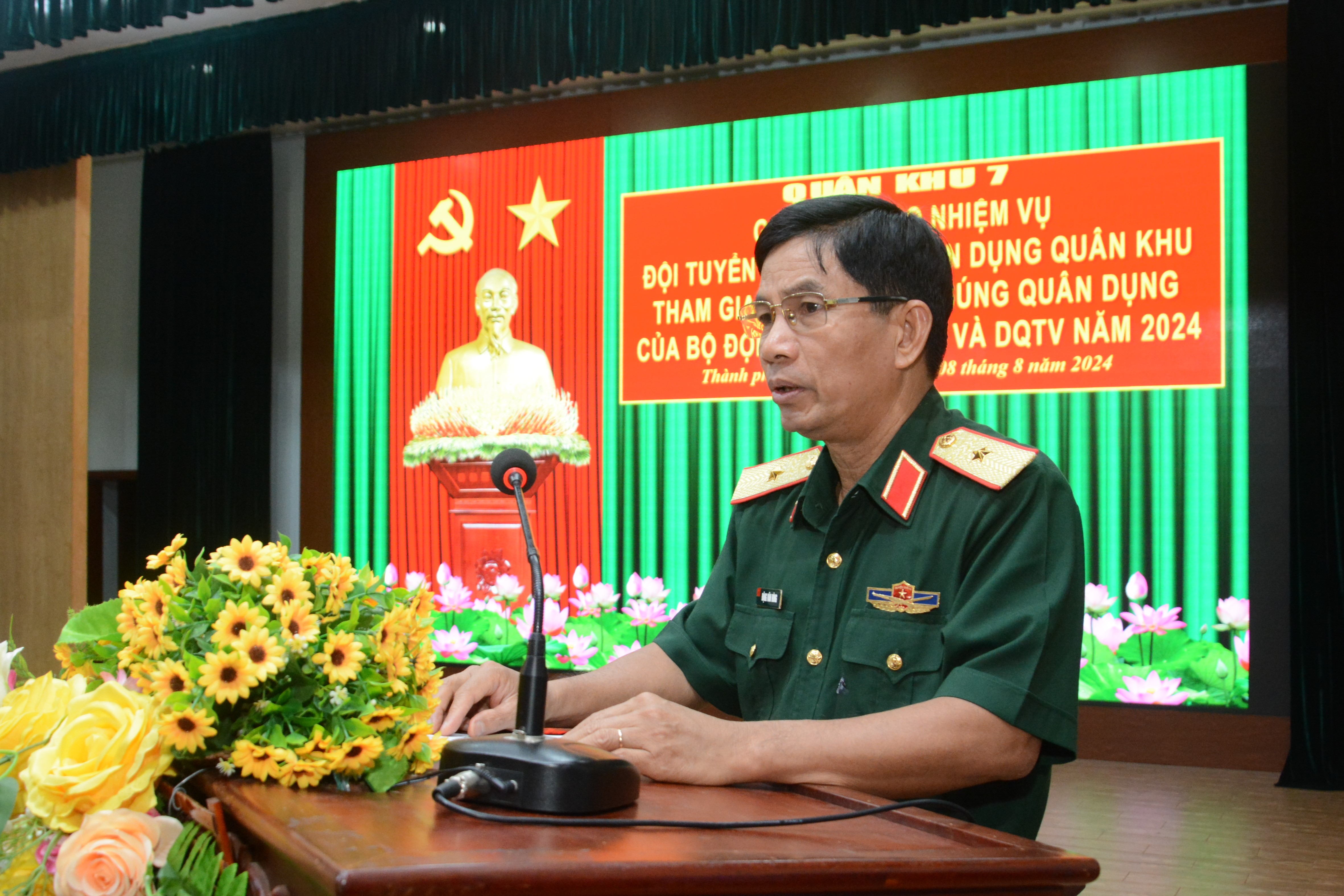 (QK7 Online) - Chiều ngày 23/10, Bộ Tham mưu Quân khu tổ chức giao nhiệm vụ Đoàn vận động viên (VĐV) tham gia Hội thao ứng phó sự cố hóa chất độc, xạ cấp đại đội, tiểu đoàn hóa học toàn quân khu vực phía Nam năm 2025. Dự và phát biểu chỉ đạo có Đại tá Phùng Thế Hùng, Phó Tham mưu trưởng Quân khu.