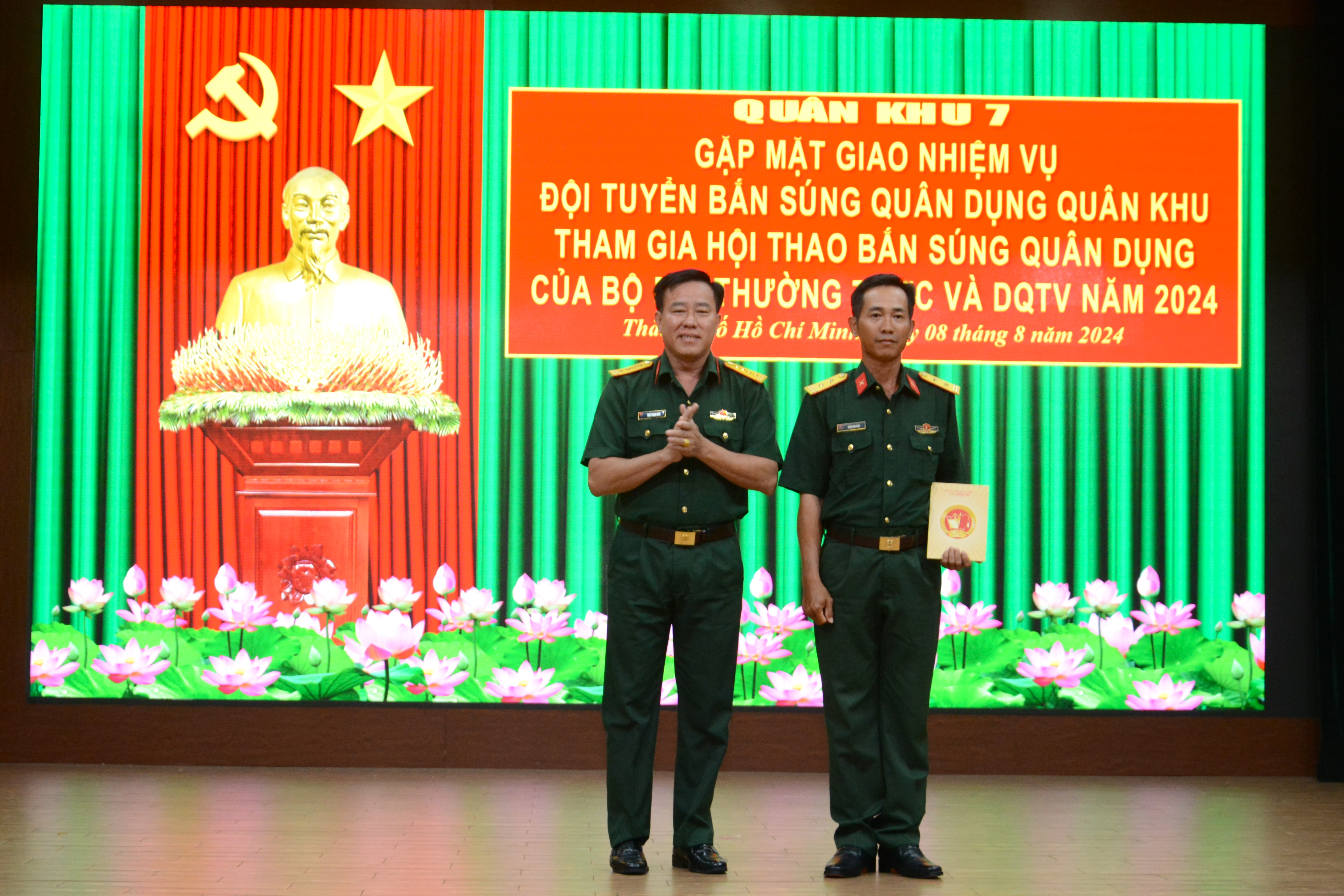 Quân khu 7 gặp mặt giao nhiệm vụ Đội tuyển tham gia Hội thao bắn súng quân dụng toàn quân và dân quân tự vệ năm 2024