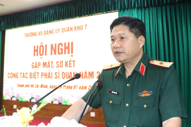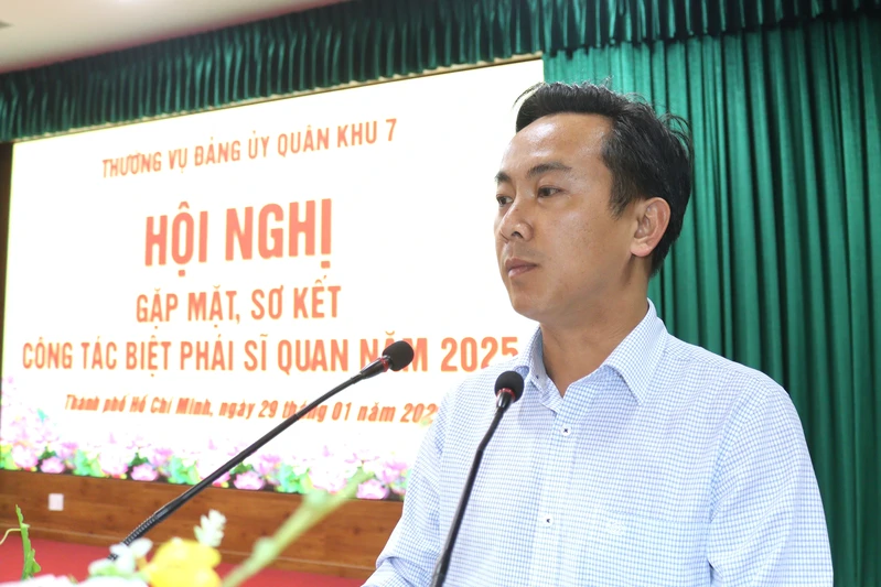 (QK7 Online) - Chiều 29/1, Thường vụ Đảng ủy Quân khu 7 tổ chức hội nghị gặp mặt, sơ kết công tác biệt phái sĩ quan năm 2025. Thiếu tướng Phạm Anh Tuấn, Ủy viên Thường vụ Đảng ủy Quân khu, Chủ nhiệm Chính trị Quân khu chủ trì hội nghị.