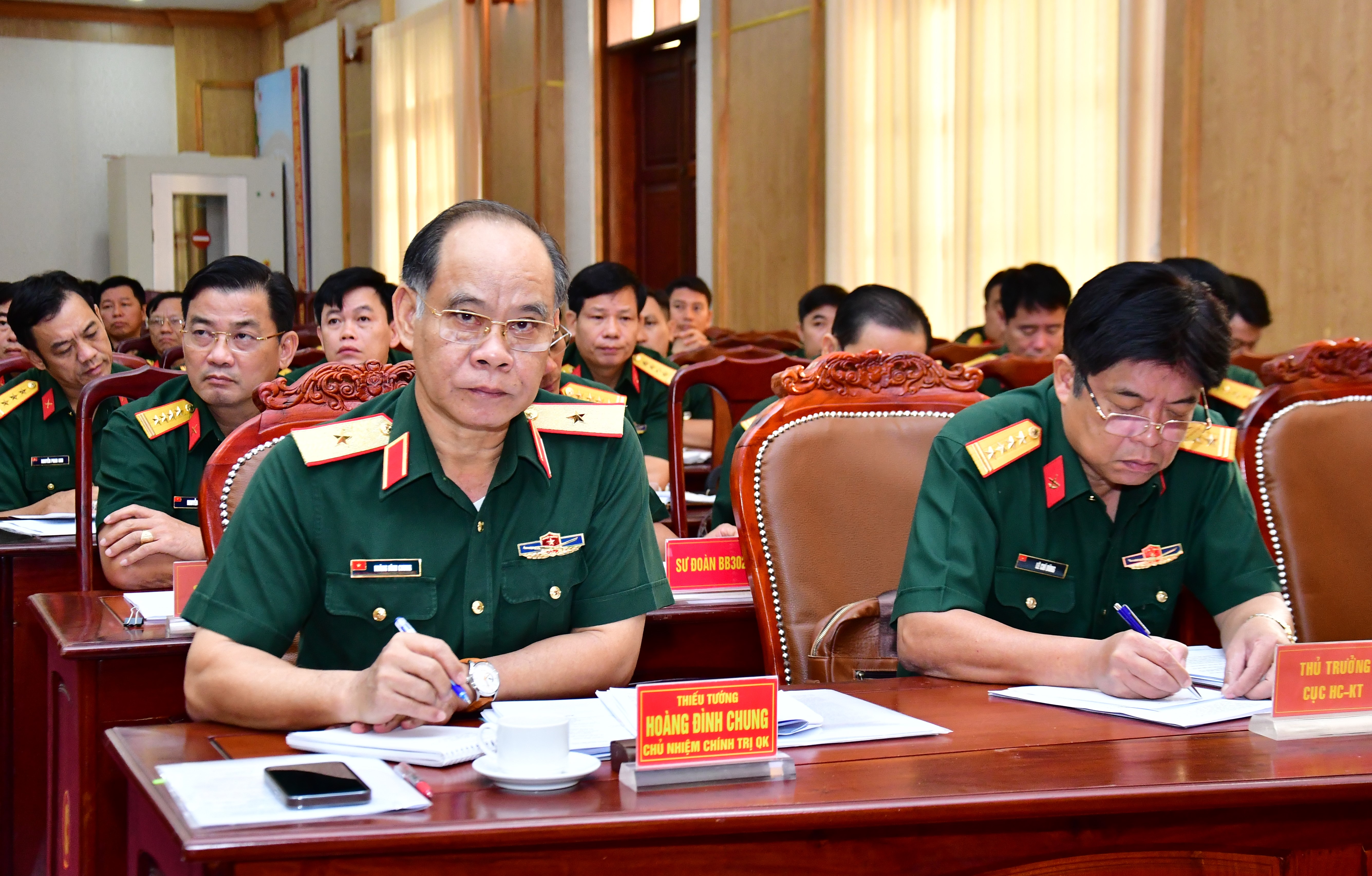 Thiếu tướng Hoàng Đình Chung, Chủ nhiệm Chính trị Quân khu và Đại tá Lê Chí Dũng, Phó Chủ nhiệm Hậu cần - Kỹ thuật Quân khu dự hội nghị.
