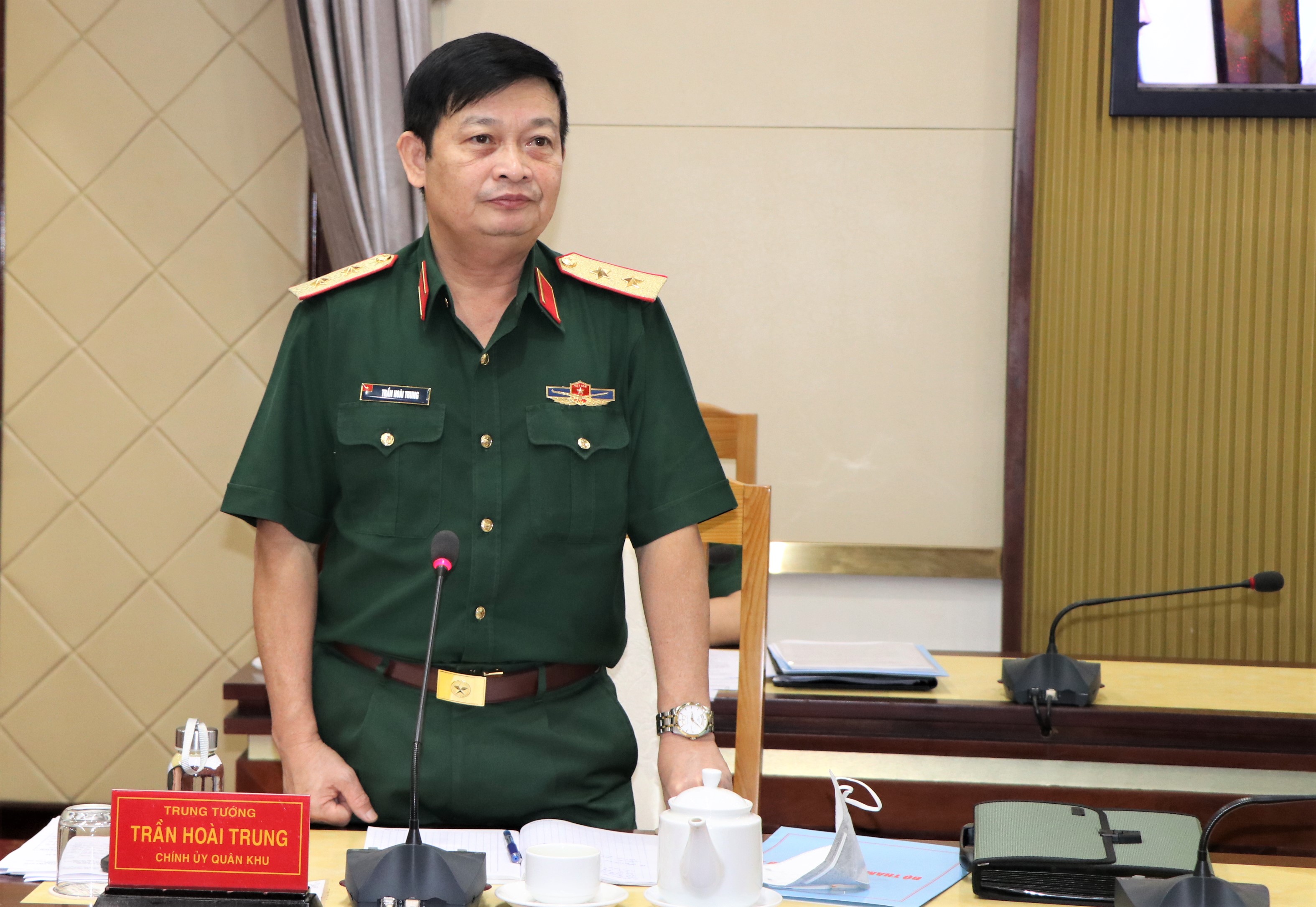 Trung tướng Trần Hoài Trung, Bí thư Đảng ủy, Chính ủy Quân khu phát biểu, yêu cầu khắc phục một số hạn chế trong quá trình thực hiện dự án, giai đoạn 2017- 2020, để làm tốt hơn trong giai đoạn 2021- 2025.