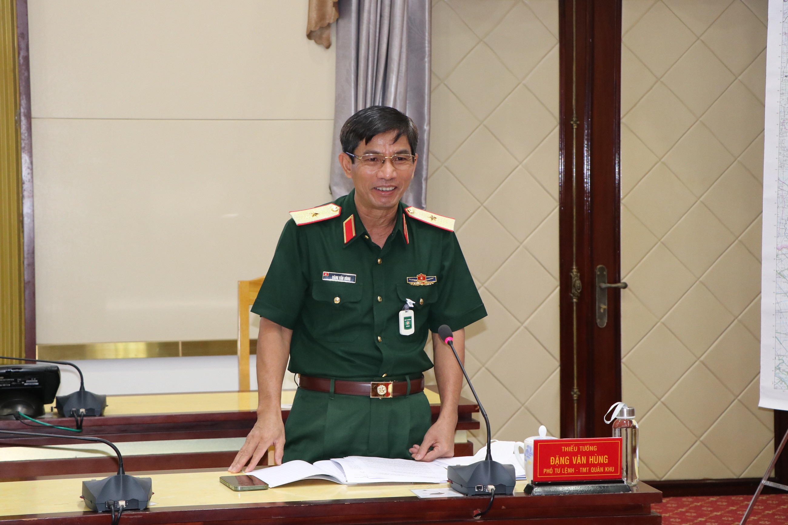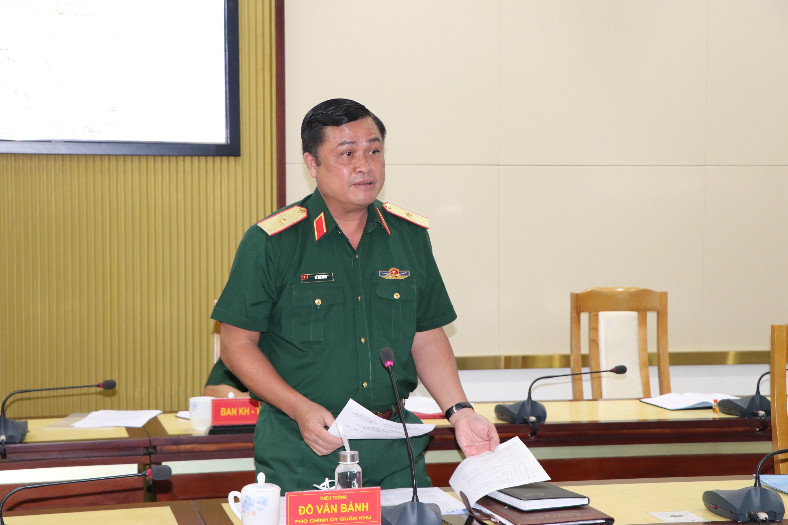 Thiếu tướng Nguyễn Trường Thắng, UVTW Đảng, Tư lệnh Quân khu chủ trì hội nghị.