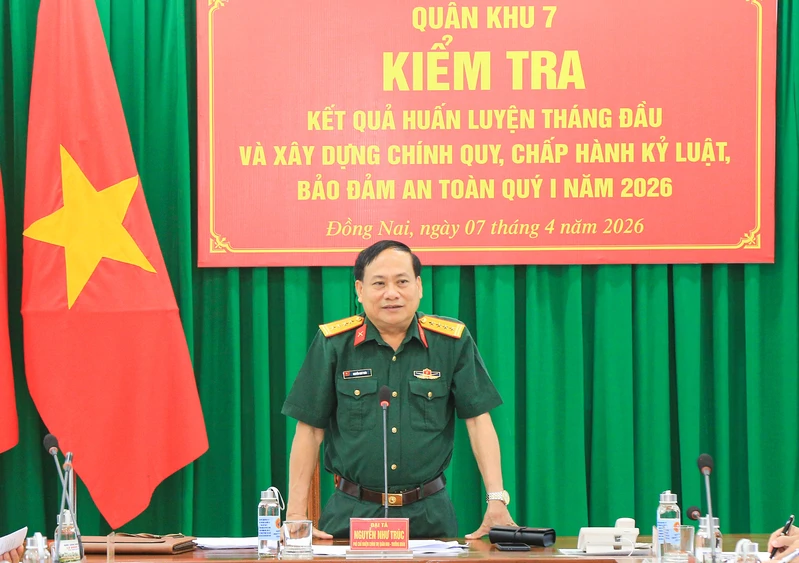 (QK7 Online) - Sáng 7/4, đoàn công tác Quân khu 7 do Đại tá Nguyễn Như Trúc, Phó Chủ nhiệm Chính trị Quân khu làm trưởng đoàn đã đến kiểm tra kết quả huấn luyện tháng đầu và xây dựng chính quy, chấp hành kỷ luật, bảo đảm an toàn quý I năm 2026 đối với Lữ đoàn 75. Tham gia đoàn công tác có đại diện Lữ đoàn 23, Lữ đoàn 25 và Lữ đoàn 77.