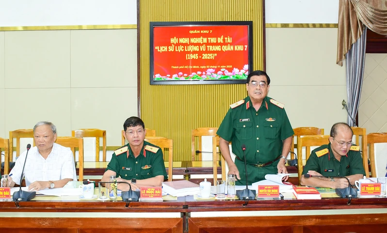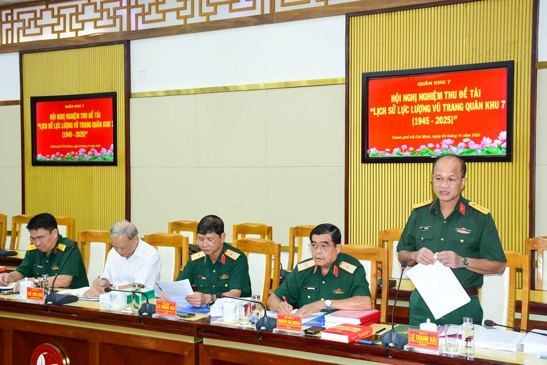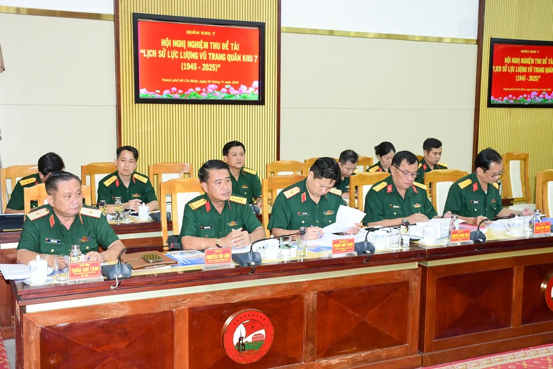 Tại hội nghị, Đại tá PGS, TS Hồ Sơn Đài, nguyên Trưởng Phòng Khoa học quân sự, Chủ biên đề tài báo cáo kết quả nghiên cứu đề tài. Trong 1 năm thực hiện, Ban nghiên cứu biên soạn đã quán triệt đầy đủ sự chỉ đạo của Đảng ủy, Bộ Tư lệnh Quân khu; bảo đảm đúng tiến độ kế hoạch. Ban nghiên cứu biên soạn đã phục dựng một cách hệ thống và toàn diện, đầy đủ lịch sử LLVT Quân khu qua các thời kỳ, trình bày được những điểm nhấn ở từng chiến trường, từng giai đoạn lịch sử, phản ánh rõ đặc điểm của LLVT Quân khu 7 trên địa bàn Đông Nam Bộ, cực Nam Trung Bộ và Nam Tây Nguyên, đáp ứng được mục đích đề ra.