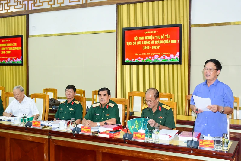 Thiếu tướng PGS, TS Vũ Quang Đạo, nguyên Viện trưởng Viện Lịch sử Quân sự Việt Nam, ủy viên phản biện 2 đánh giá: Đề tài là một công trình nghiên cứu Lịch sử quân sự có chất lượng tốt, đã tái hiện khá đầy đủ, toàn diện cả về tổ chức và hoạt động của LLVT Quân khu 7 từ khi ra đời cho đến nay, đáp ứng được mục tiêu, yêu cầu đề ra. Đề tài được kết cấu hợp lý, bám sát các giai đoạn hoạt động của LLVT Quân khu qua các thời kỳ lịch sử; đã tận dụng và khai thác có hiệu quả các tài liệu, tư liệu lịch sử lưu trữ, các báo cáo tổng kết, cập nhật những vấn đề mới, để rút ra những nhận xét, đánh giá xác thực. Đề tài rút ra những bài học kinh nghiệm quý giá từ 80 năm lịch sử của Quân khu, đề ra hướng vận dụng các bài học đó trong tình hình mới.