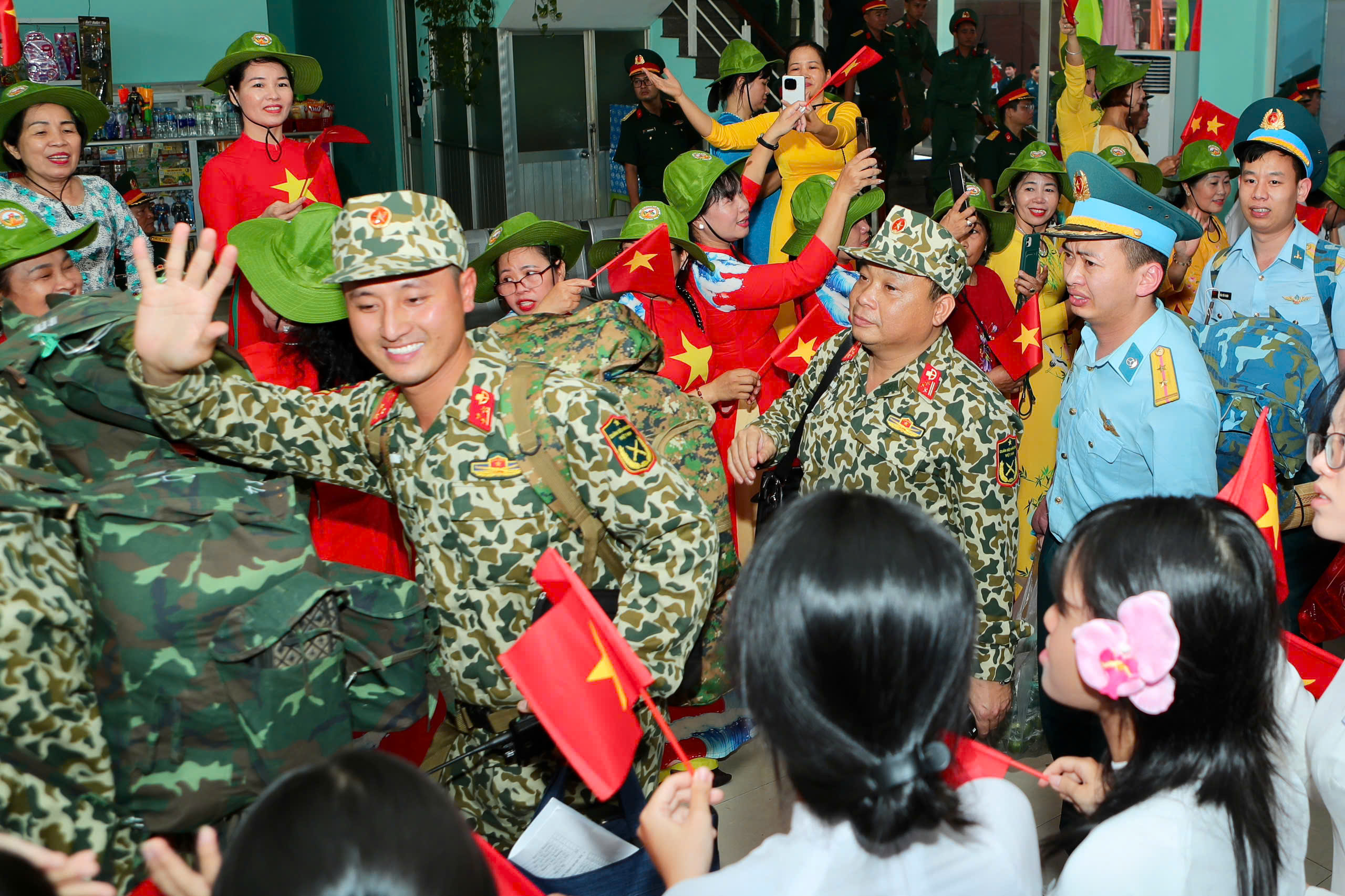 Các đoàn viên thanh niên, học sinh, sinh viên đón các chiến sĩ trong không khí phấn khởi.