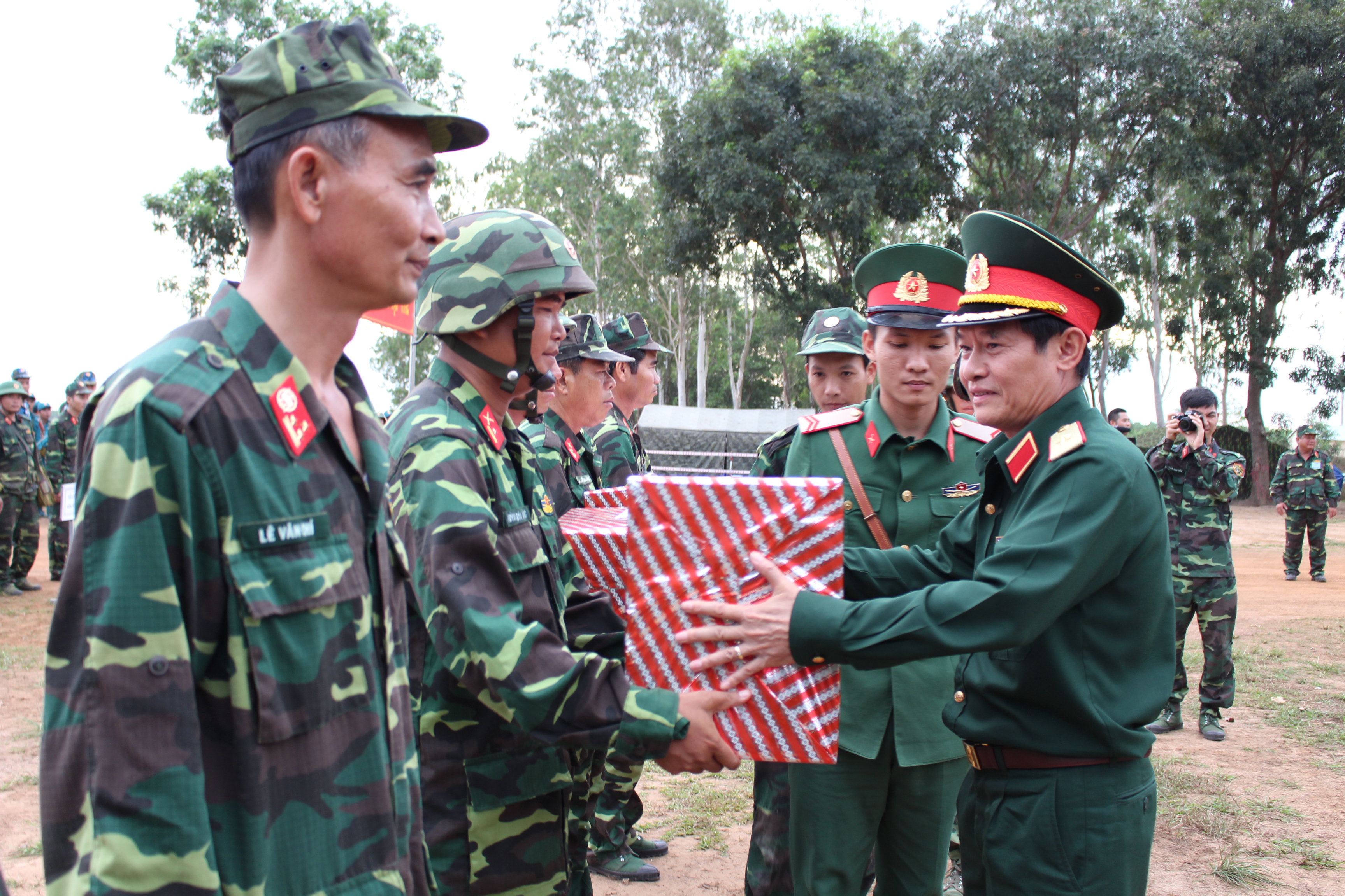 Thiếu tướng Lê Bửu Tuấn, Phó Tư lệnh, TMT Quân khu tặng quà cho các đơn vị sau khi hoàn thành nhiệm vụ diễn tập