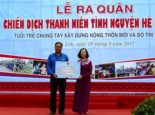Sáng 28-5, tại Quảng trường 10-3, TP Buôn Ma Thuột (Đắk Lắk) Trung ương Đoàn TNCS Hồ Chí Minh tổ chức Lễ ra quân Chiến dịch Thanh niên tình nguyện Hè 2017 với chủ đề “Tuổi trẻ chung tay xây dựng nông thôn mới và đô thị văn minh”. Đồng chí Trương Thị Mai, Ủy Viên Bộ Chính trị, Bí thư Trung ương Đảng, Trưởng Ban Dân vận Trung ương dự.