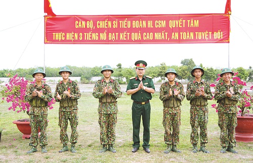 Đại tá Phạm Anh Tuấn, Chính ủy Sư đoàn 5 động viên chiến sĩ mới bắn giỏi.