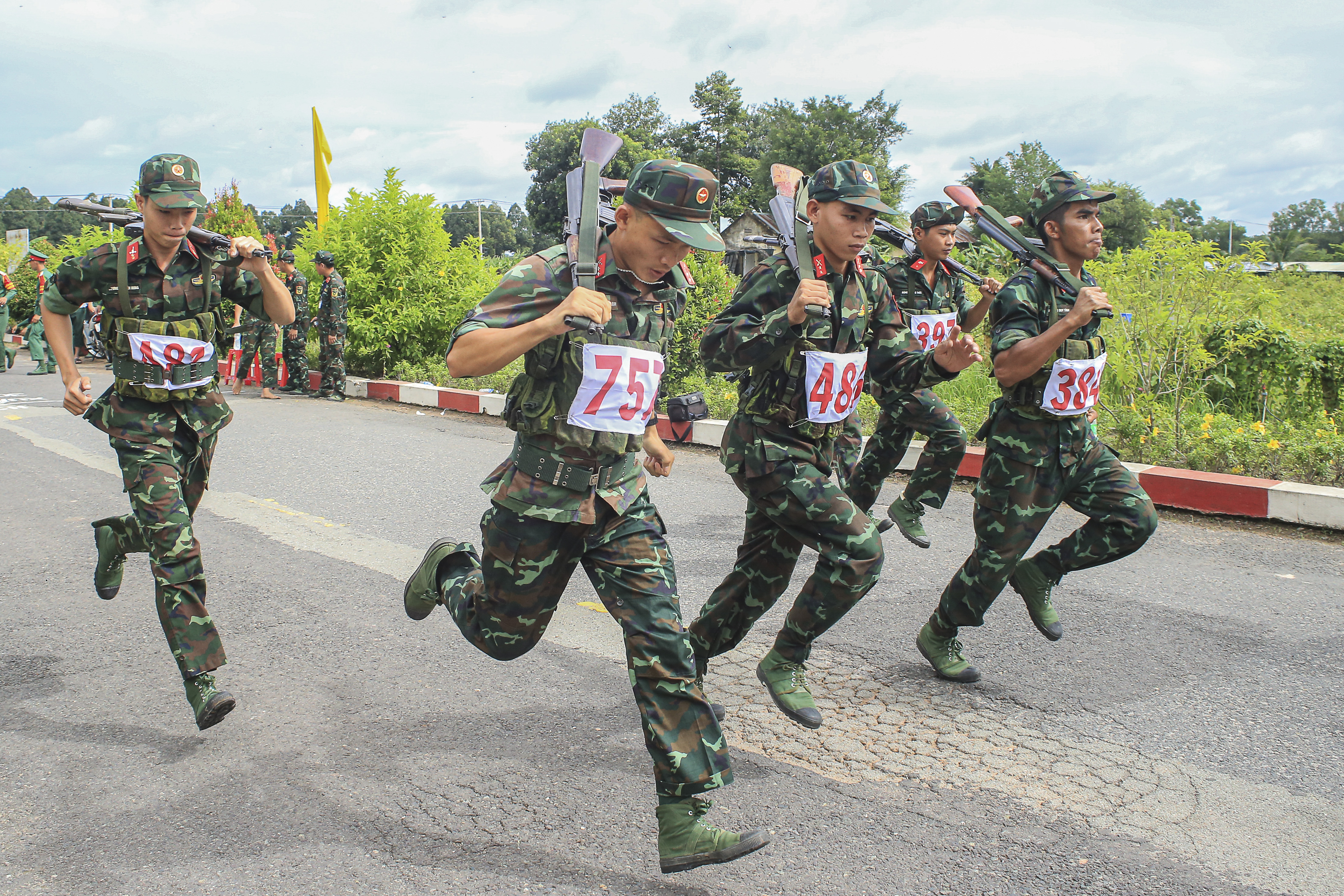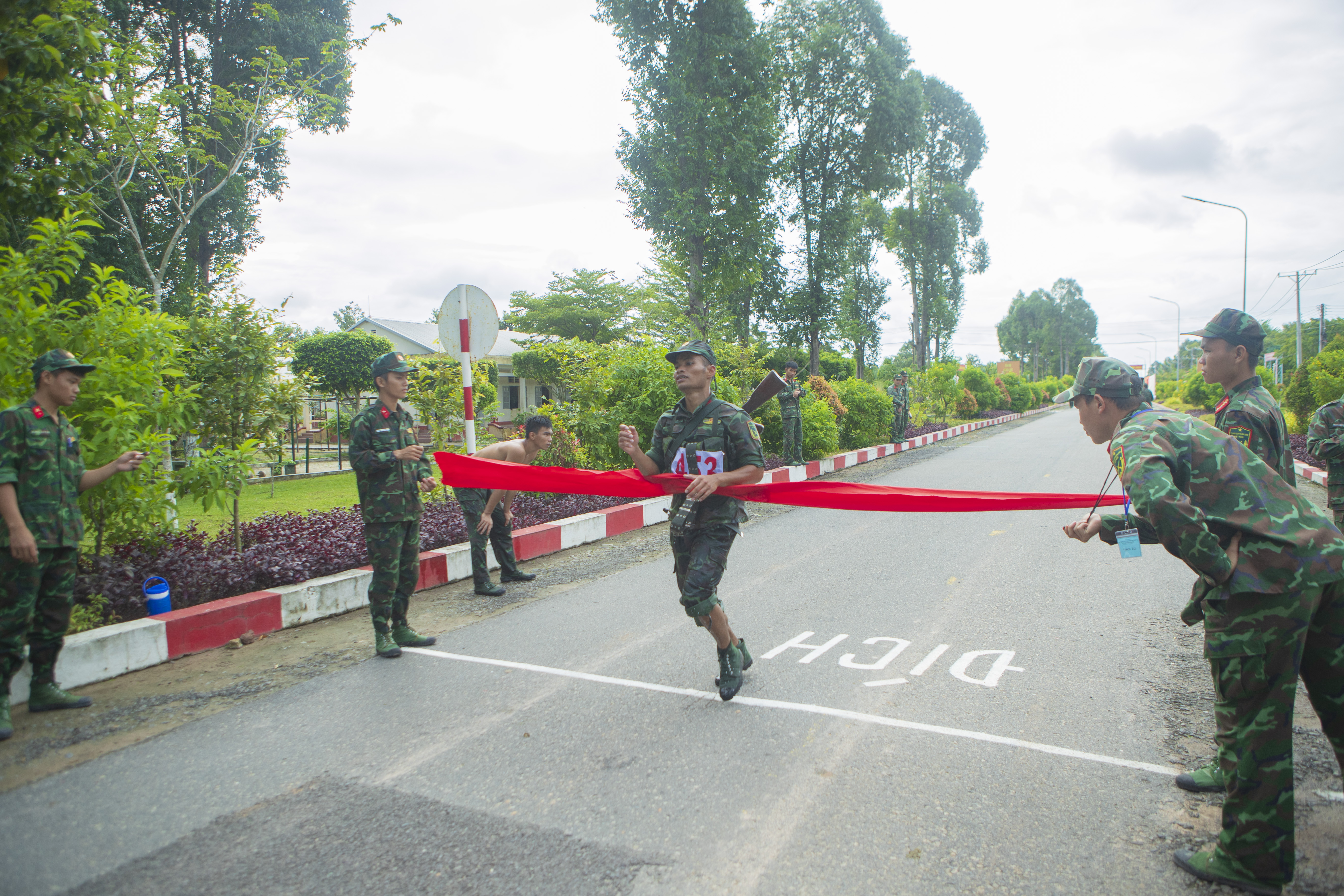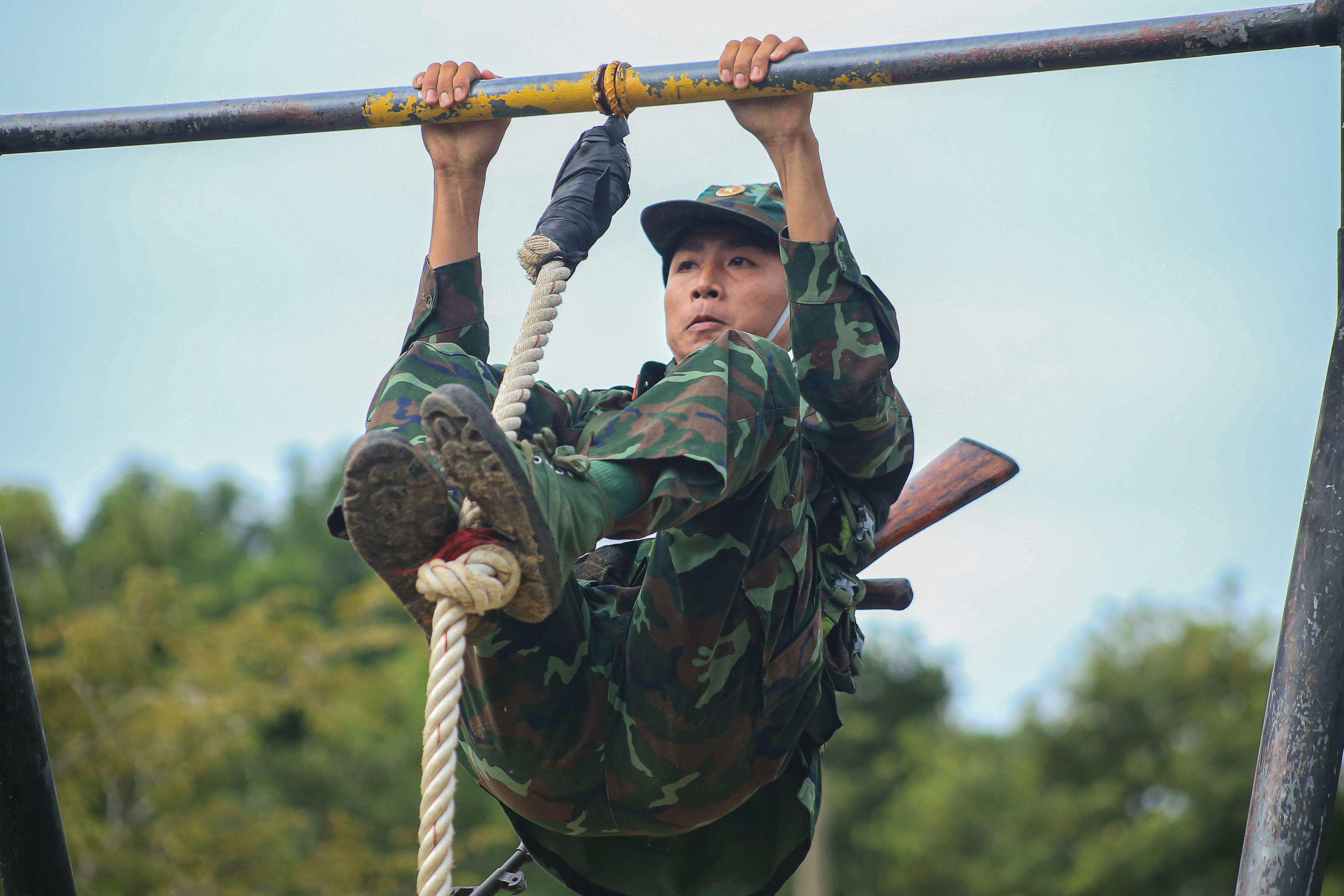 Hoàn thành phần thi chạy vũ trang 3.000m vượt chướng ngại vật.