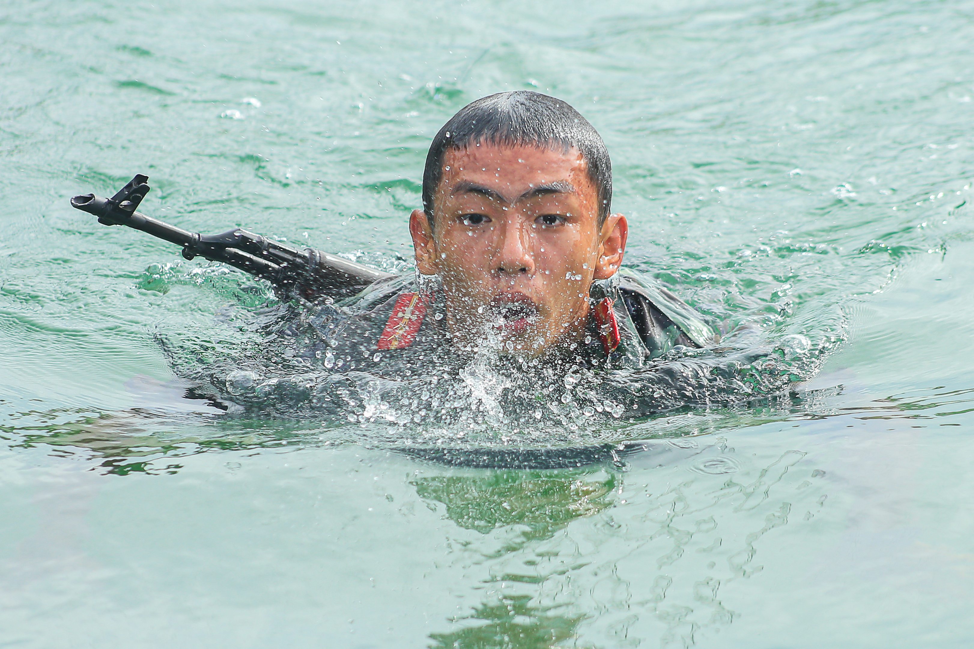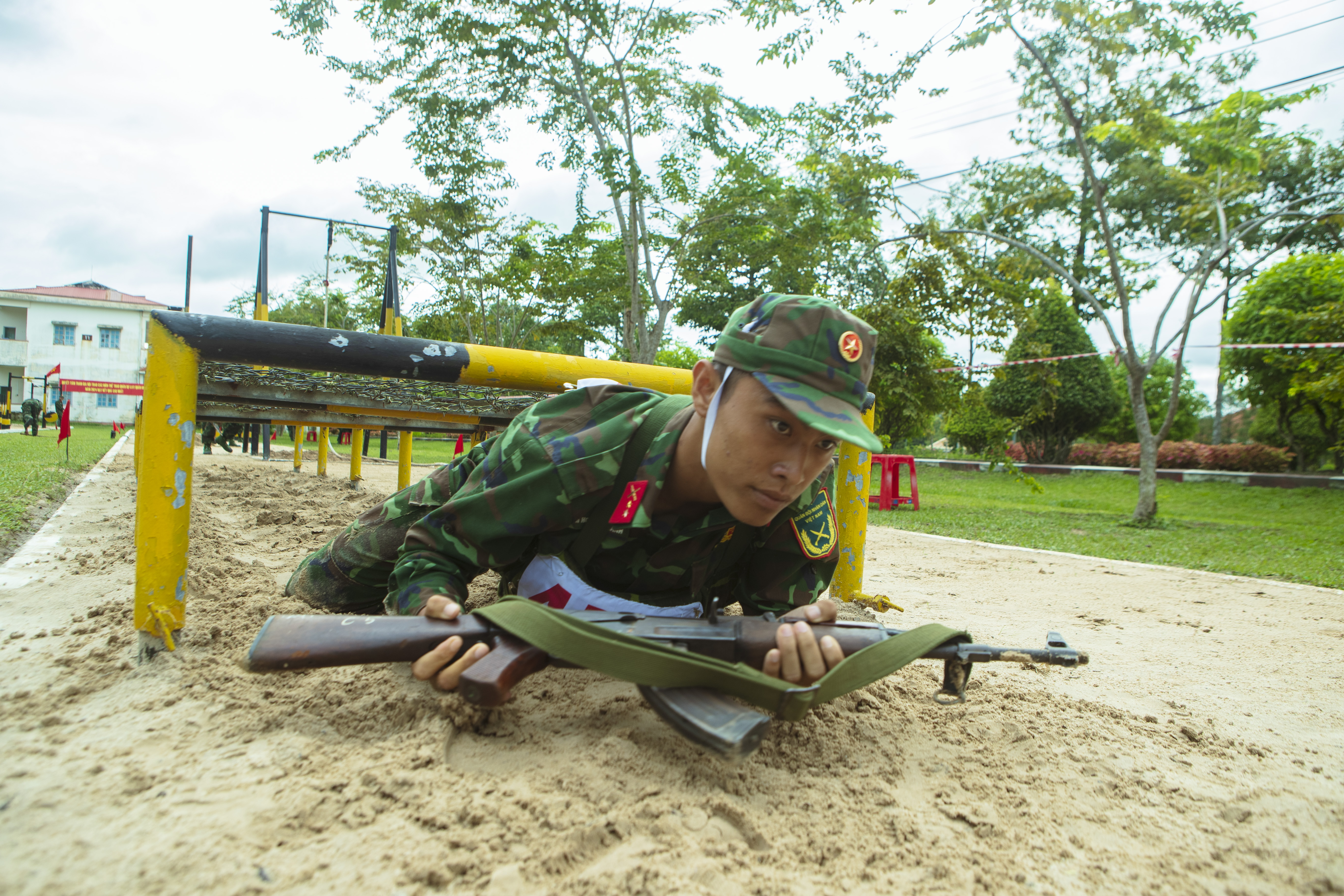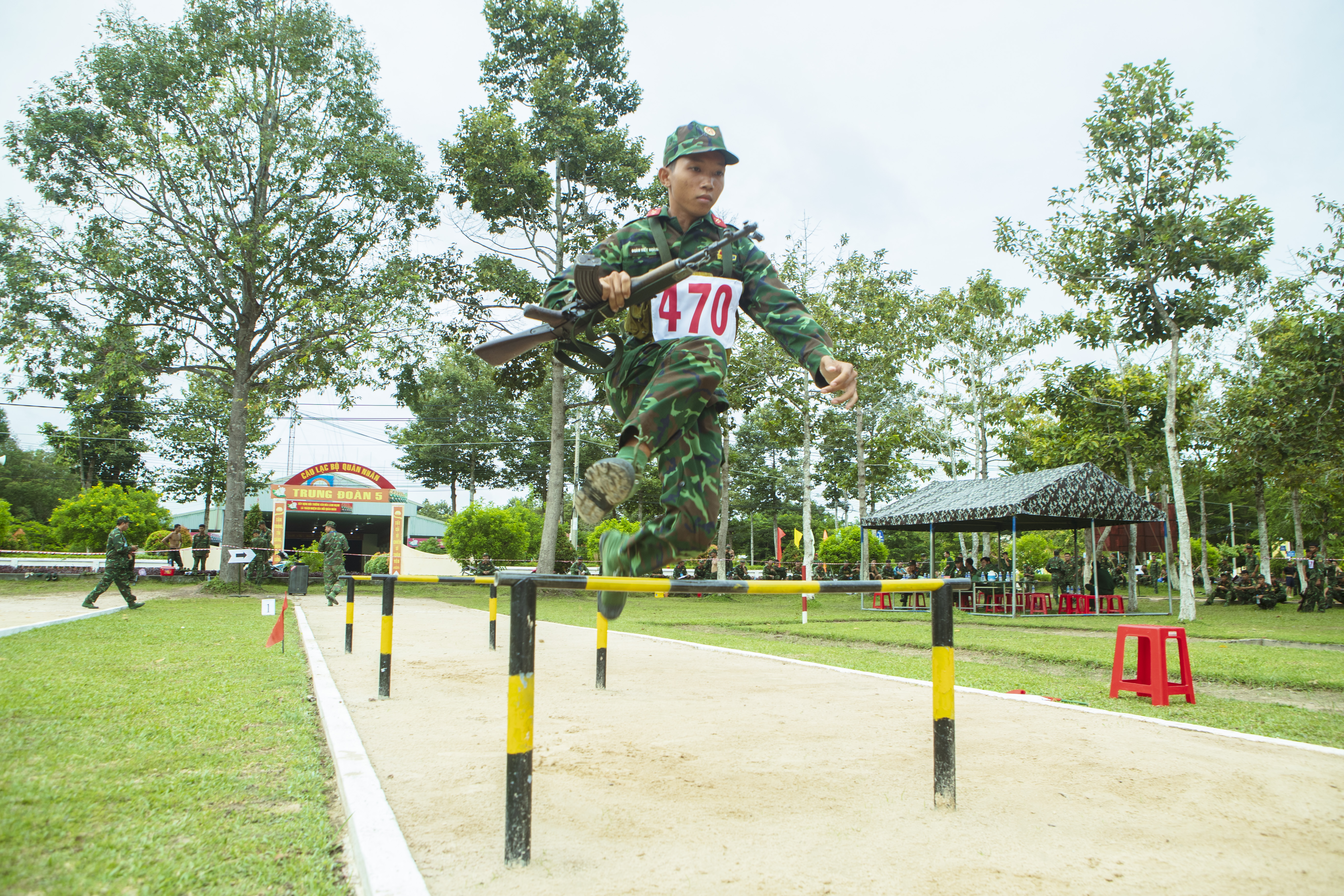 Hoàn thành phần thi chạy vũ trang 3.000m vượt chướng ngại vật.