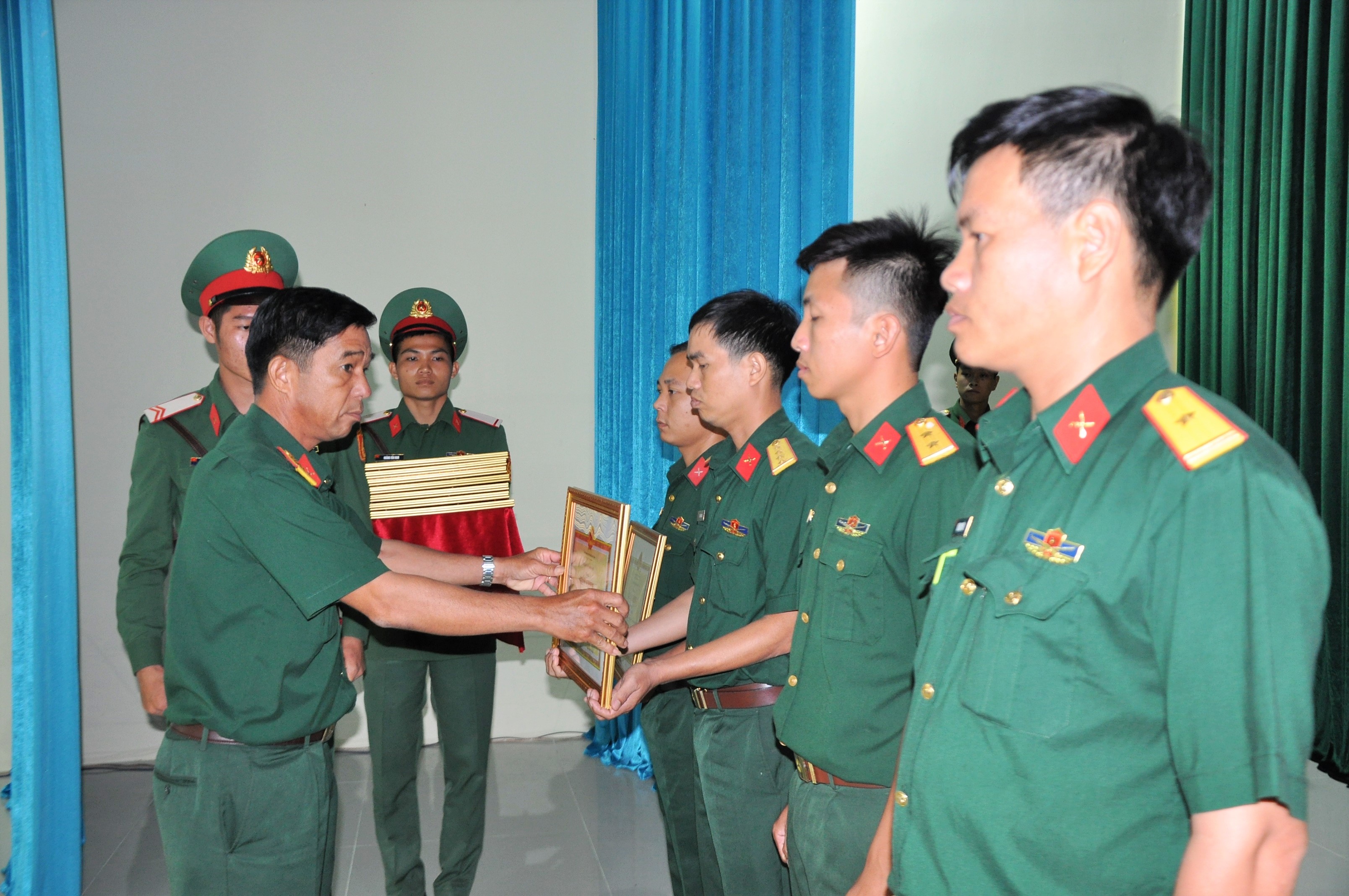 Đại tá Thái Văn Hùng, Chính uỷ Sư đoàn 302 tặng giấy khen cho các tập thể và cá nhân hoàn thành tốt nhiệm vụ diễn tập.