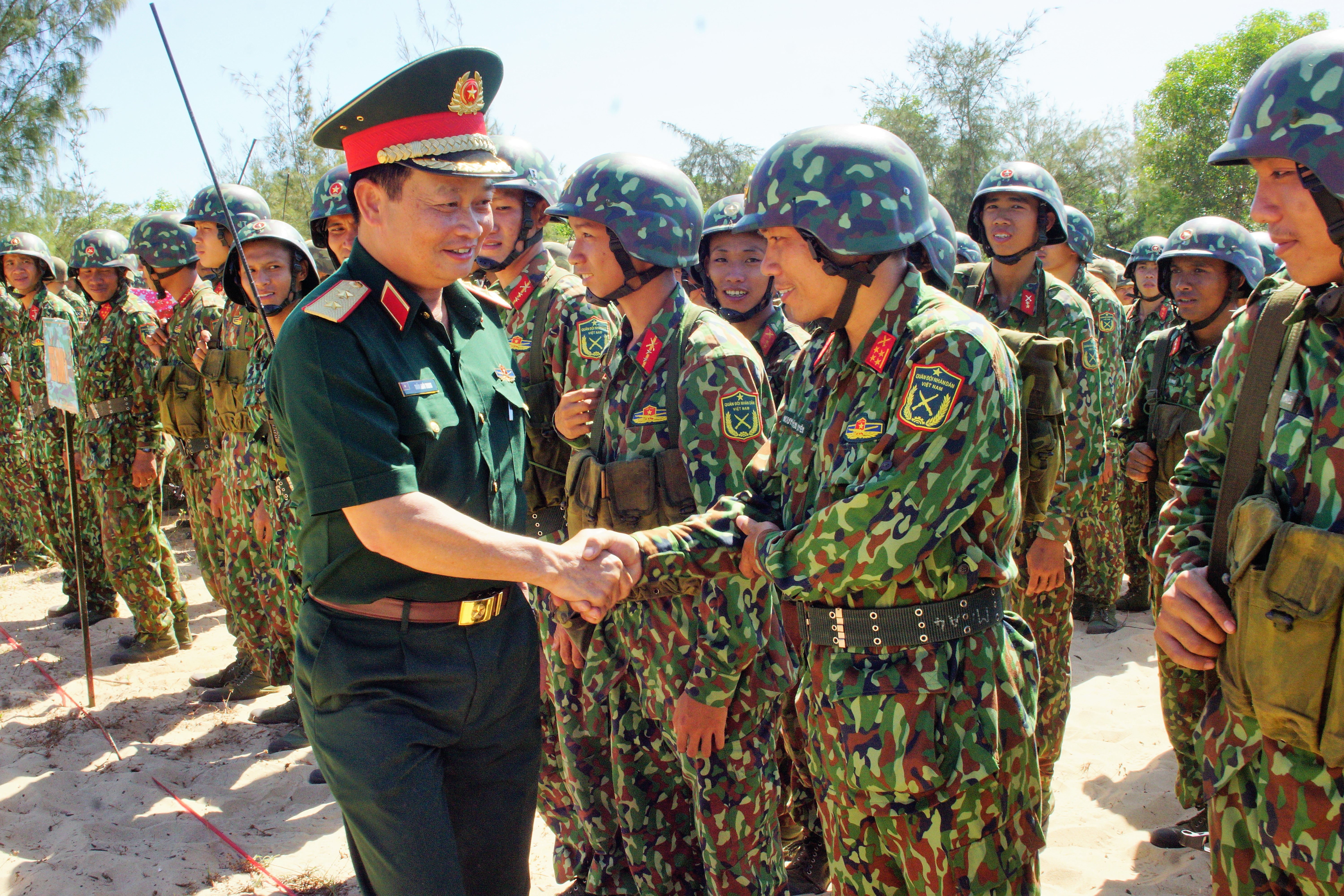 Trung tướng Trần Hoài Trung, Bí thư Đảng ủy, Chính ủy Quân khu chúc mừng cán bộ, chiến sĩ sư đoàn hoàn thành nhiệm vụ diễn tập.