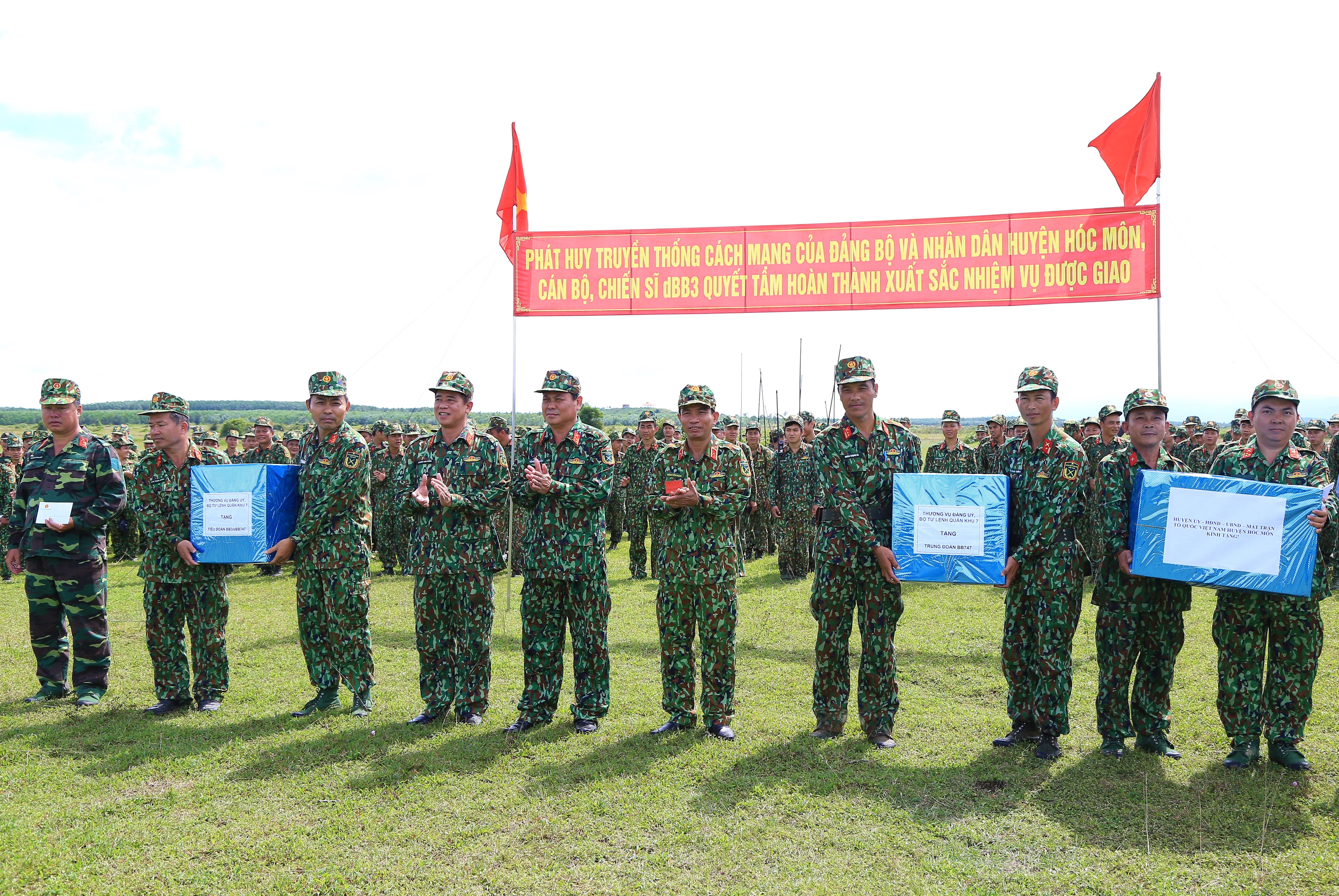 Thiếu tướng Đặng Văn Hùng, Phó Tư lệnh, Tham mưu trưởng Quân khu tặng quà các đơn vị tham gia diễn tập.