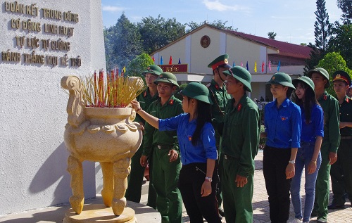 Đoàn viên thanh niên Sư đoàn và đơn vị kết nghĩa dâng hương Tượng đài Sư đoàn