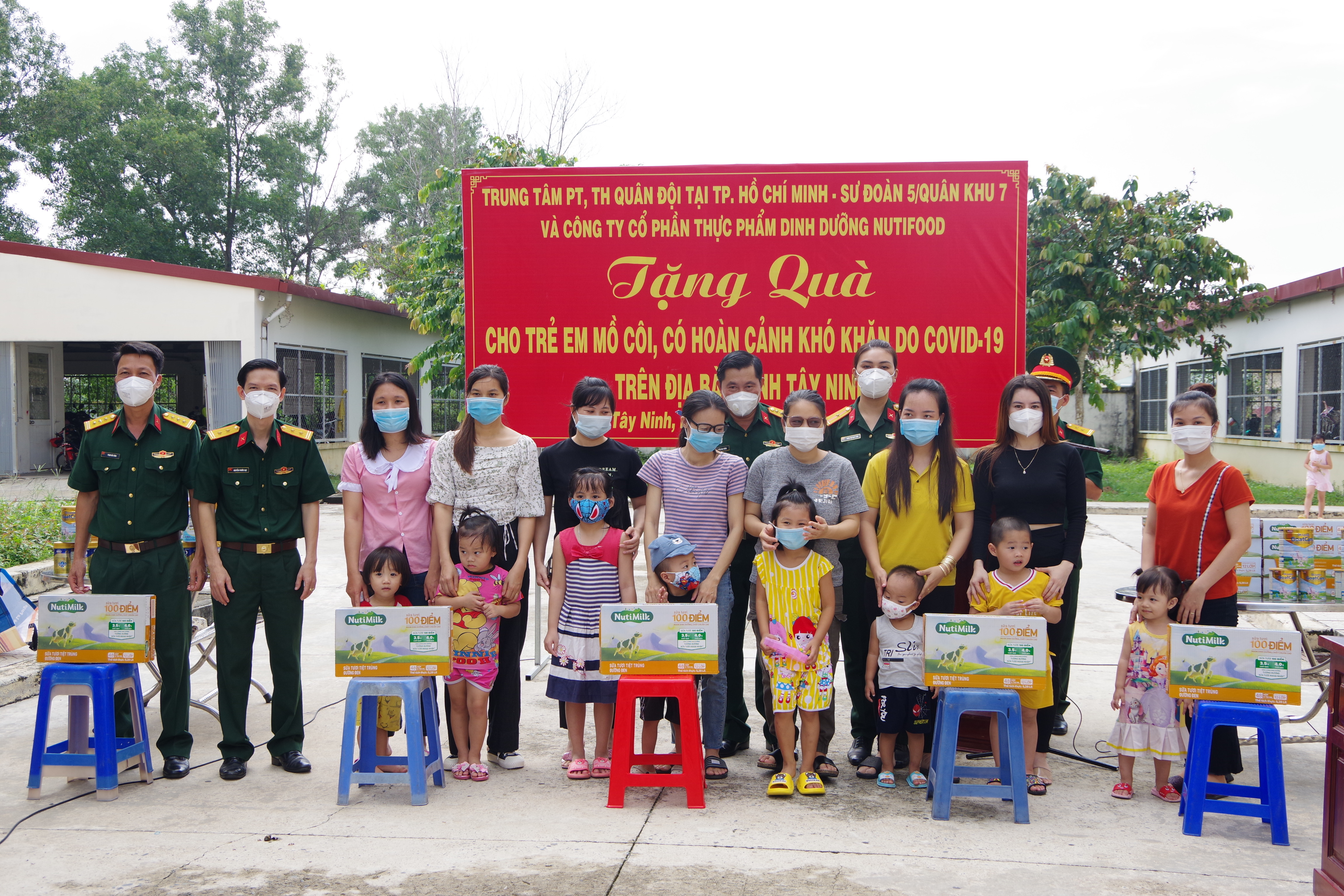Trên địa bàn tỉnh Tây Ninh có 282 trẻ em bị ảnh hưởng bởi dịch Covid-19. Trong đó có 35 em mồ côi do dịch bệnh, 215 em bị nhiễm SAR-CoV-2, 32 em có hoàn cảnh đặt biệt khó khăn. Mỗi em sẽ nhận được 1 thùng sữa nước Nutimilk, đối với trẻ sơ sinh sẽ nhận thêm 1 thùng sữa bột. Tổng trị giá quà tặng hơn 300 triệu đồng.