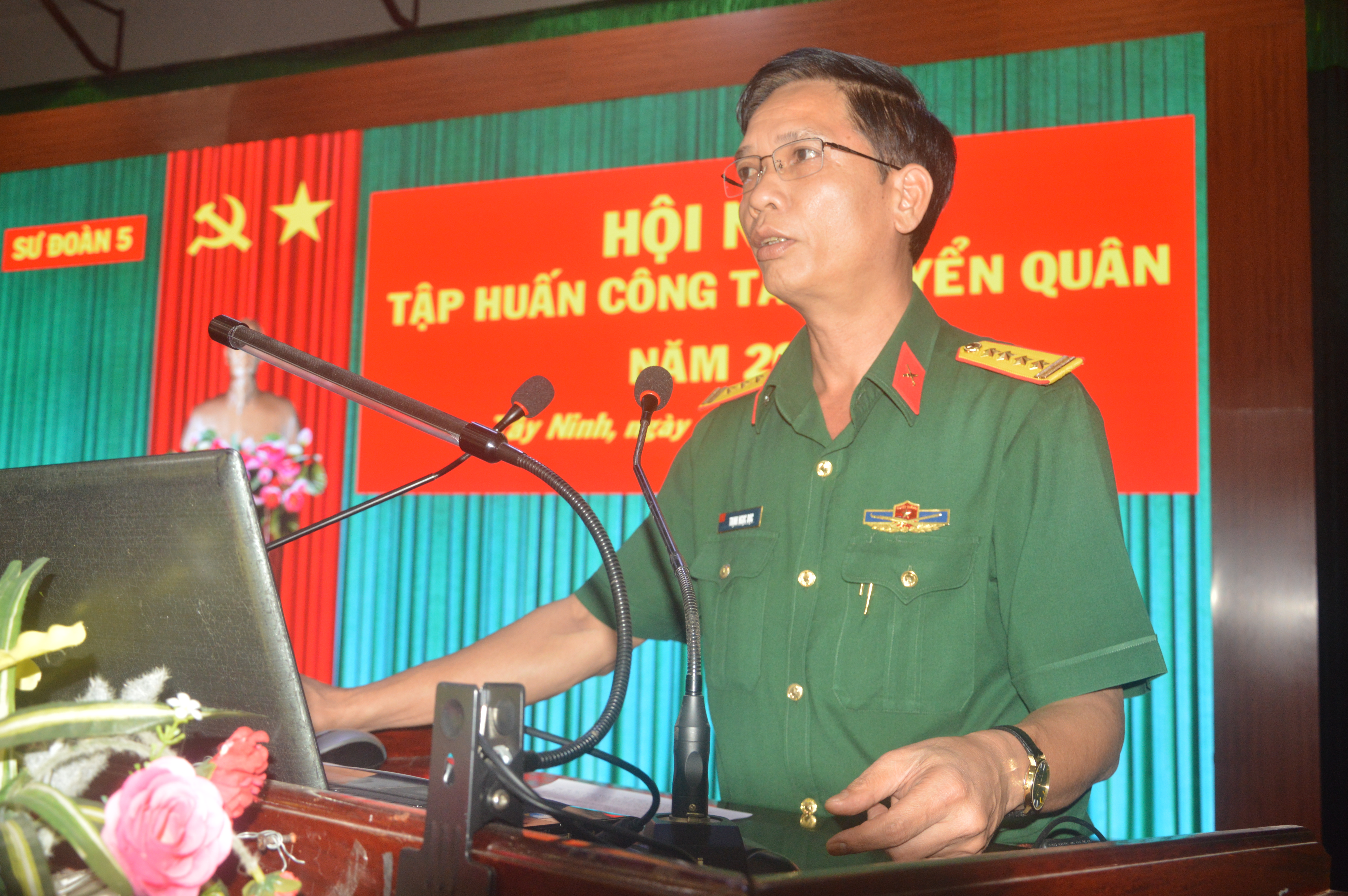 Năm 2021, Sư đoàn 5 tiếp nhận 3165 chiến sĩ mới thuộc 8 tỉnh, thành phố trên địa bàn Quân khu. Lớp học được nghiên cứu các nội dung liên quan đến công tác tuyển quân trong Luật Nghĩa vụ quân sự năm 2015; Thông tư số 148/TT-BQP ngày 04/10/2018 “Quy định tuyển chọn và gọi công dân nhập ngũ” và văn bản hướng dẫn của Quân khu. Rút kinh nghiệm một số điểm hạn chế trong công tác tuyển quân năm 2020. Thông tư liên tịch số 50/2016/TTLT-BQP-BCA ngày 15/4/2016 của Bộ Quốc phòng – Bộ Công an “Quy định tiêu chuẩn chính trị tuyển chọn công dân vào phục vụ trong Quân đội Nhân dân Việt Nam” và những điểm mới về tiêu chuẩn chính trị trong tuyển quân năm 2021. Thông tư 16/2016/TTLT-BYT-BQP ngày 30/6/2016 của Bộ trưởng Bộ Y tế - Bộ trưởng Bộ Quốc phòng quy định khám sức khỏe thực hiện nghĩa vụ quân sự. Những điểm mới của ngành Quân y trong tuyển quân năm 2021. Những điểm mới về quy định, tiêu chuẩn quân trang trong tuyển quân năm 2021.