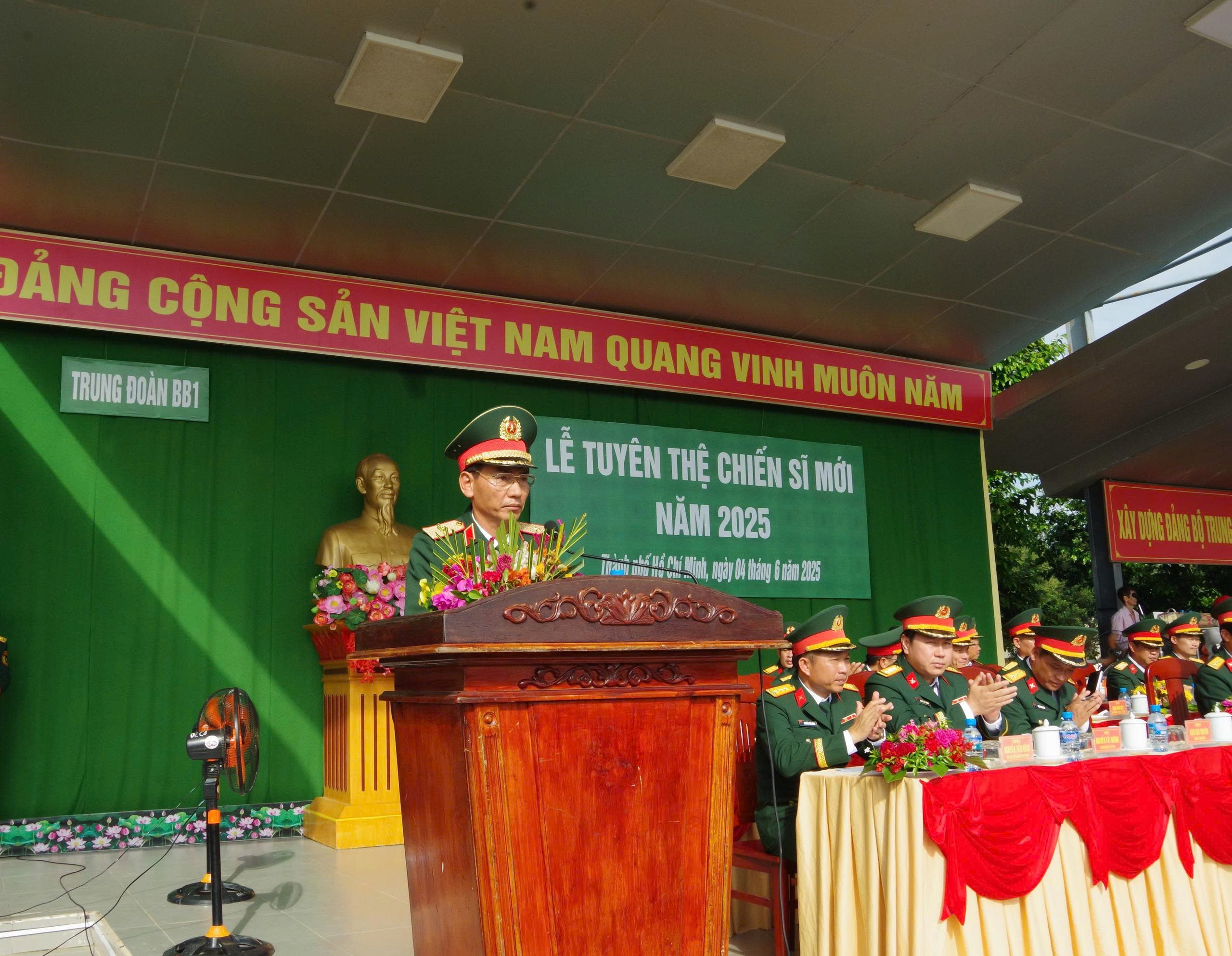 Thiếu tướng Dương Văn Quang, Phó Tư lệnh Quân đoàn 34 dự, chỉ đạo Lễ tuyên thệ chiến sĩ mới tại Trung đoàn 1, Sư đoàn 9.