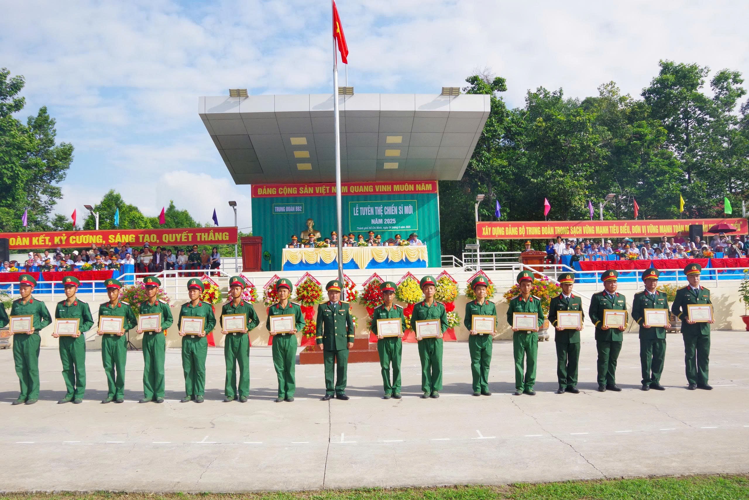 Tại buổi lễ, lãnh đạo, chỉ huy các đơn vị đã trao giấy khen tặng các chiến sĩ mới có thành tích tiêu biểu trong huấn luyện, rèn luyện và chấp hành kỷ luật. Đây là sự ghi nhận, động viên kịp thời, tiếp thêm động lực để chiến sĩ mới tiếp tục nỗ lực, trưởng thành hơn nữa trên bước đường quân ngũ.