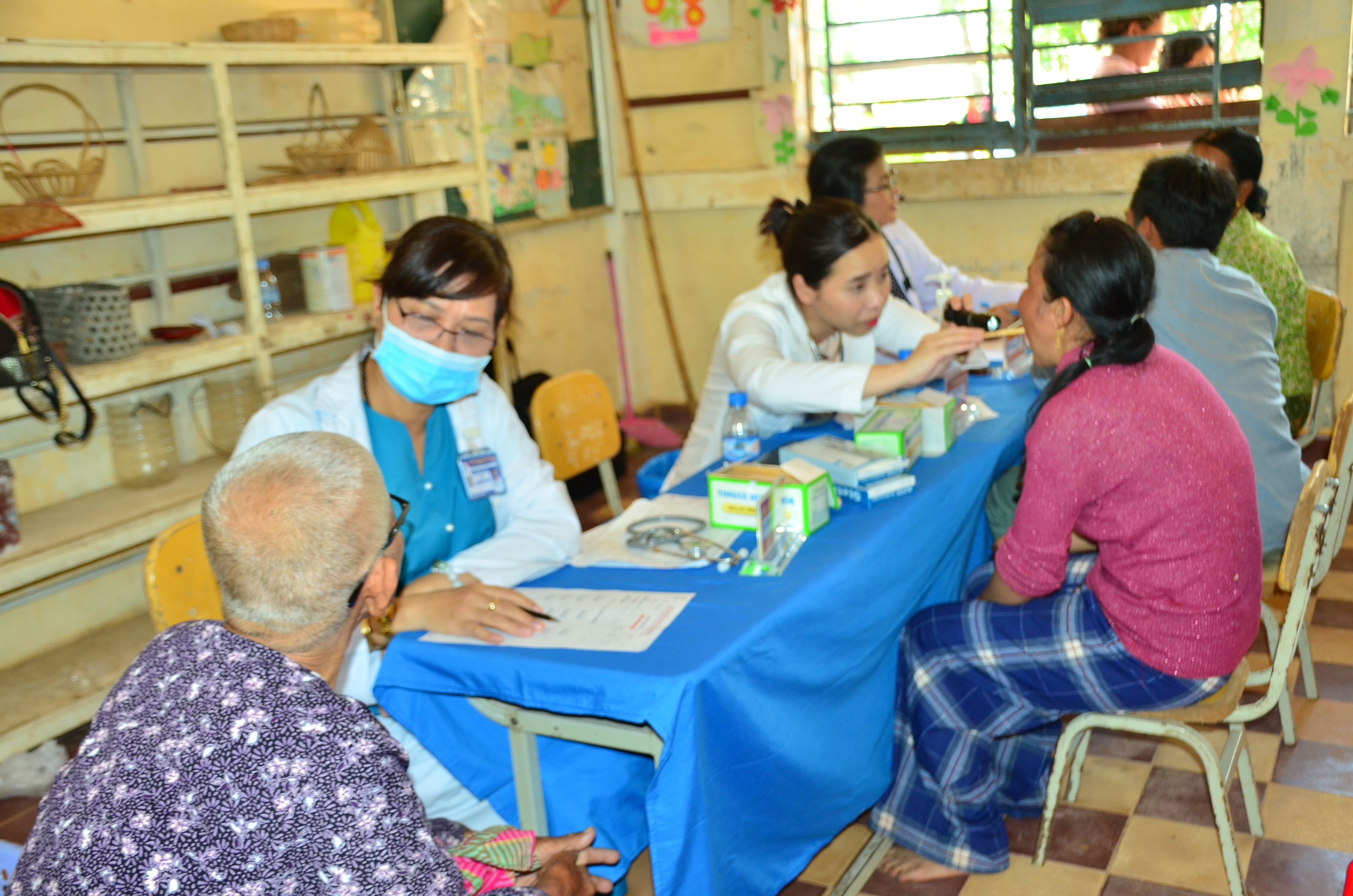 Các bác sĩ khám bệnh cho người dân.