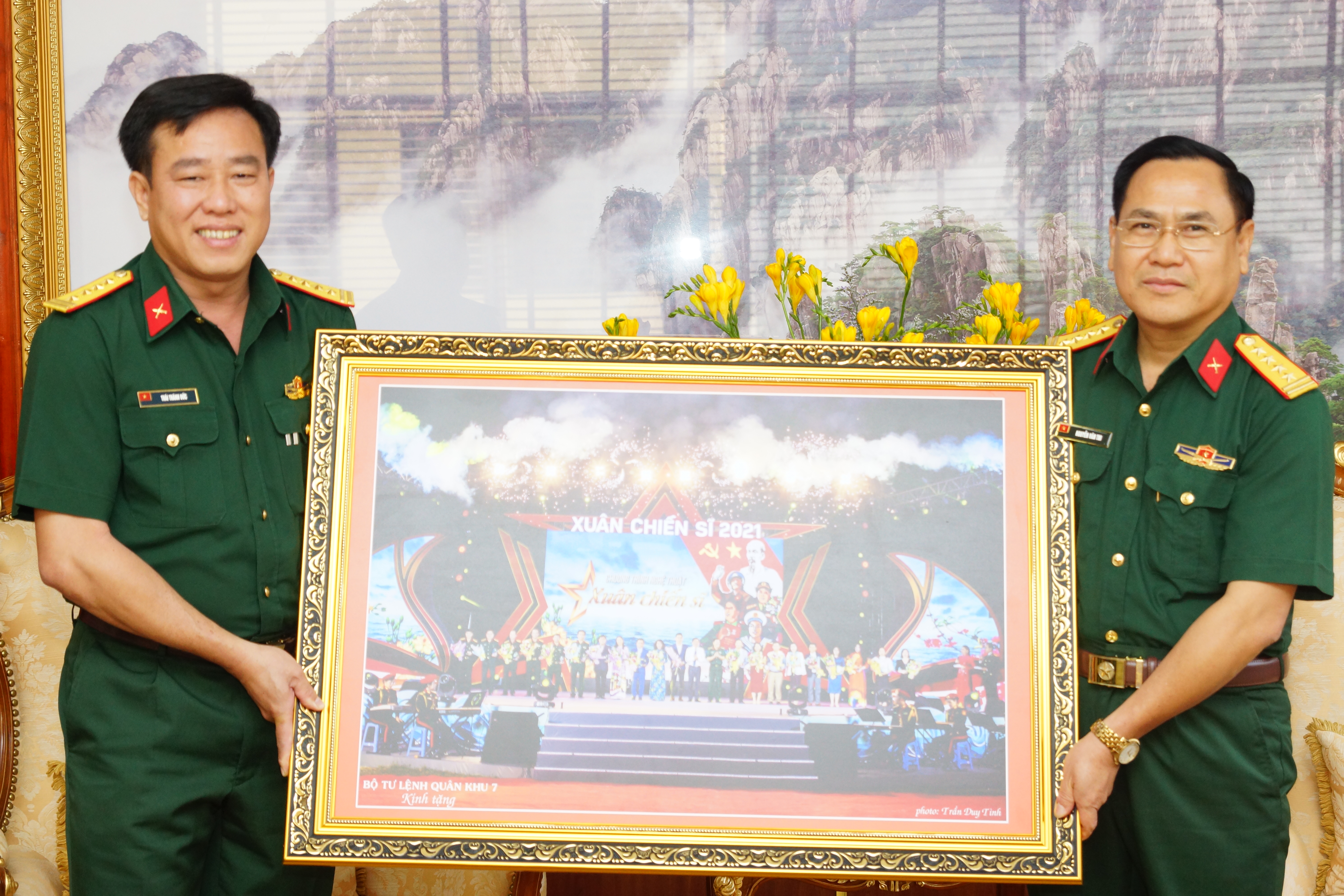 Thay mặt Bộ Tư lệnh Quân khu 7, Đại tá Thái Thành Đức trao tặng Bằng khen và Thư cảm ơn của Bộ Tư lệnh Quân khu 7 cho các doanh nghiệp trong và ngoài Quân đội, ghi nhận sự đóng góp tích cực cho chương trình “Xuân chiến sĩ”. Mong rằng, trong những chương trình tiếp theo, các doanh nghiệp sẽ tiếp tục đồng hành cùng Quân khu 7 để mang những niềm vui mới đến bộ đội và Nhân dân trên địa bàn Quân khu 7.