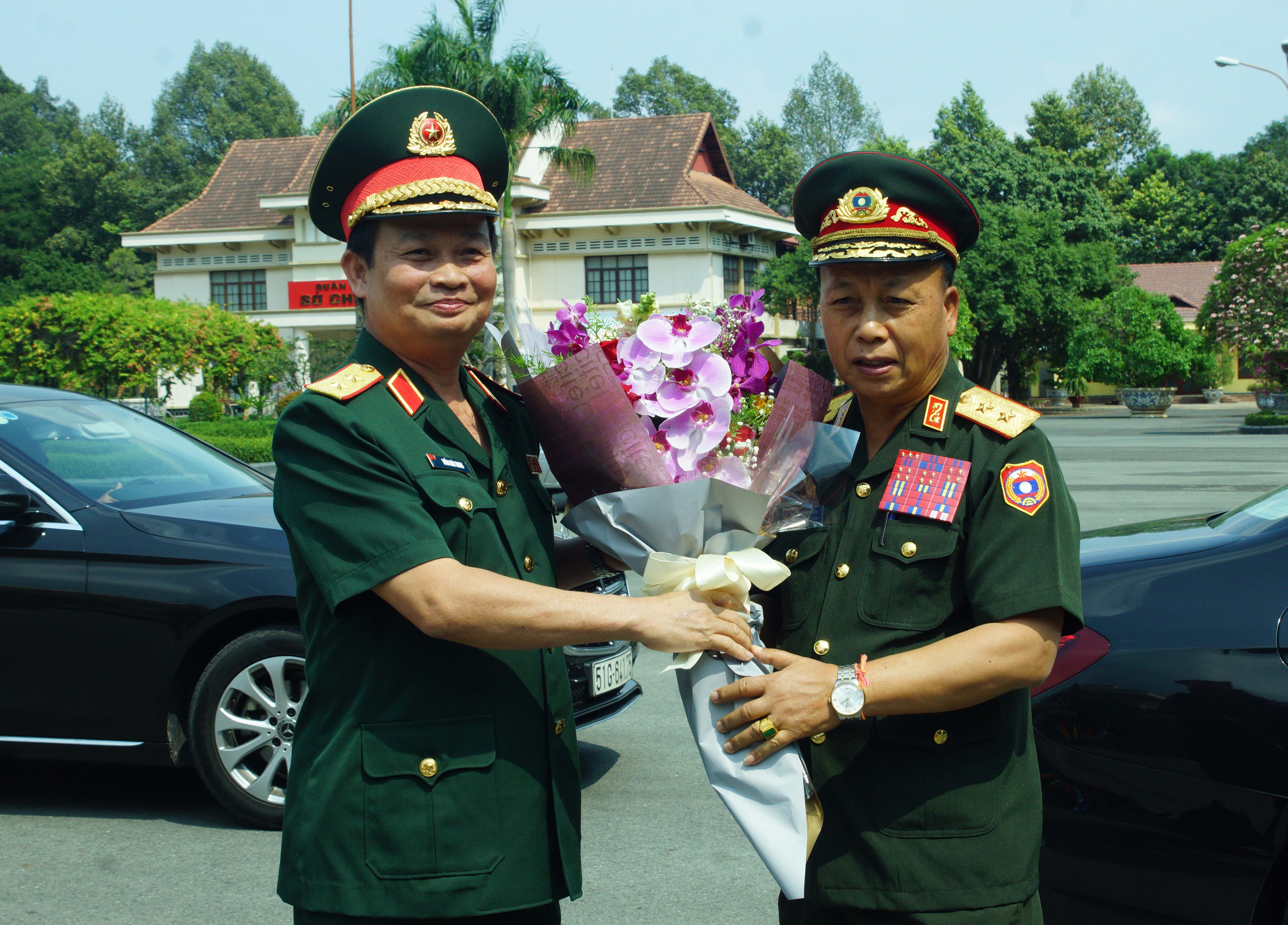 Trung tướng Trần Hoài Trung, Bí thư Đảng ủy, Chính ủy Quân khu 7 nhiệt liệt chào mừng đoàn Chủ nhiệm Tổng cục Chính trị QĐND Lào đến thăm Quân khu 7
