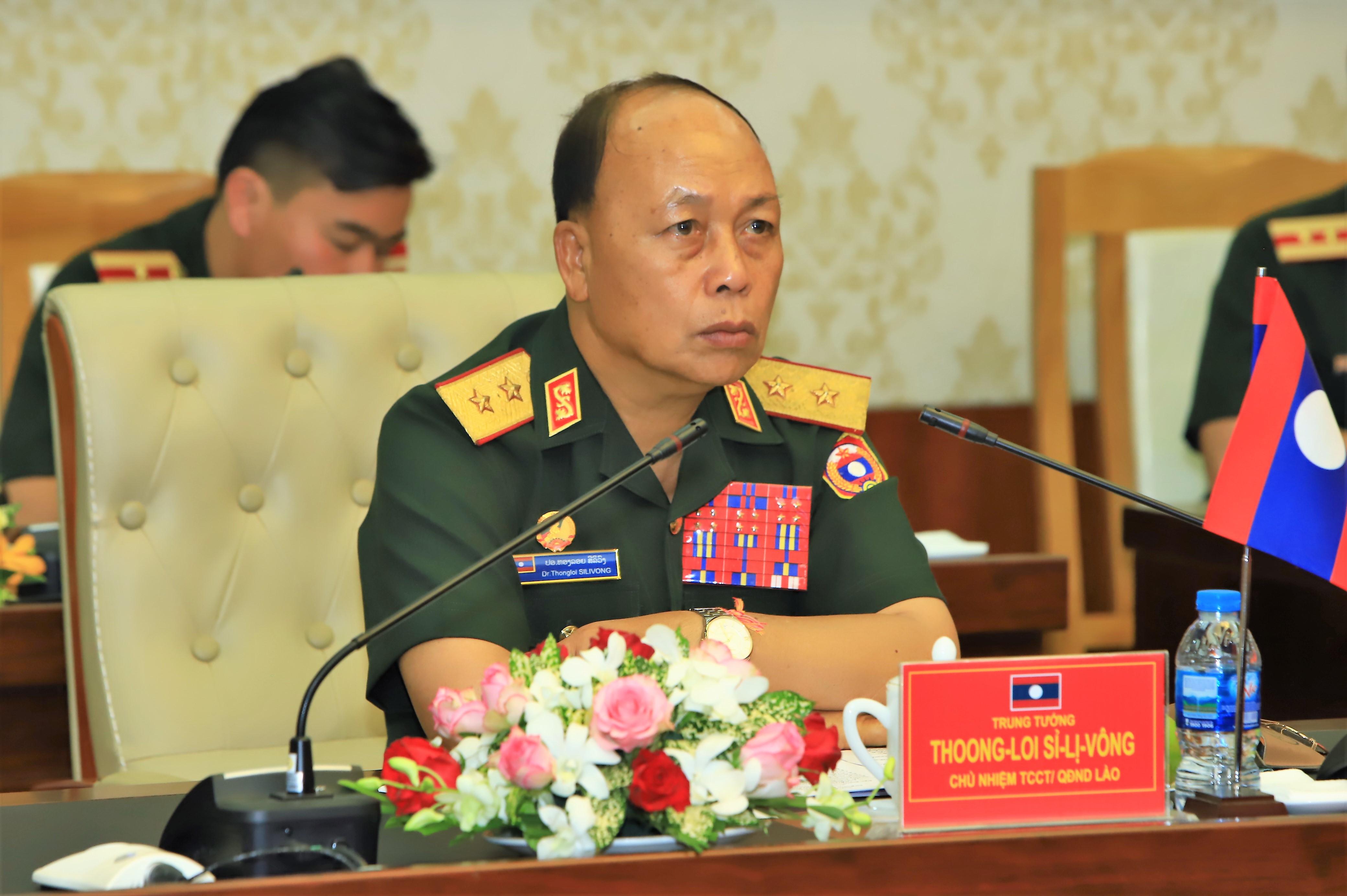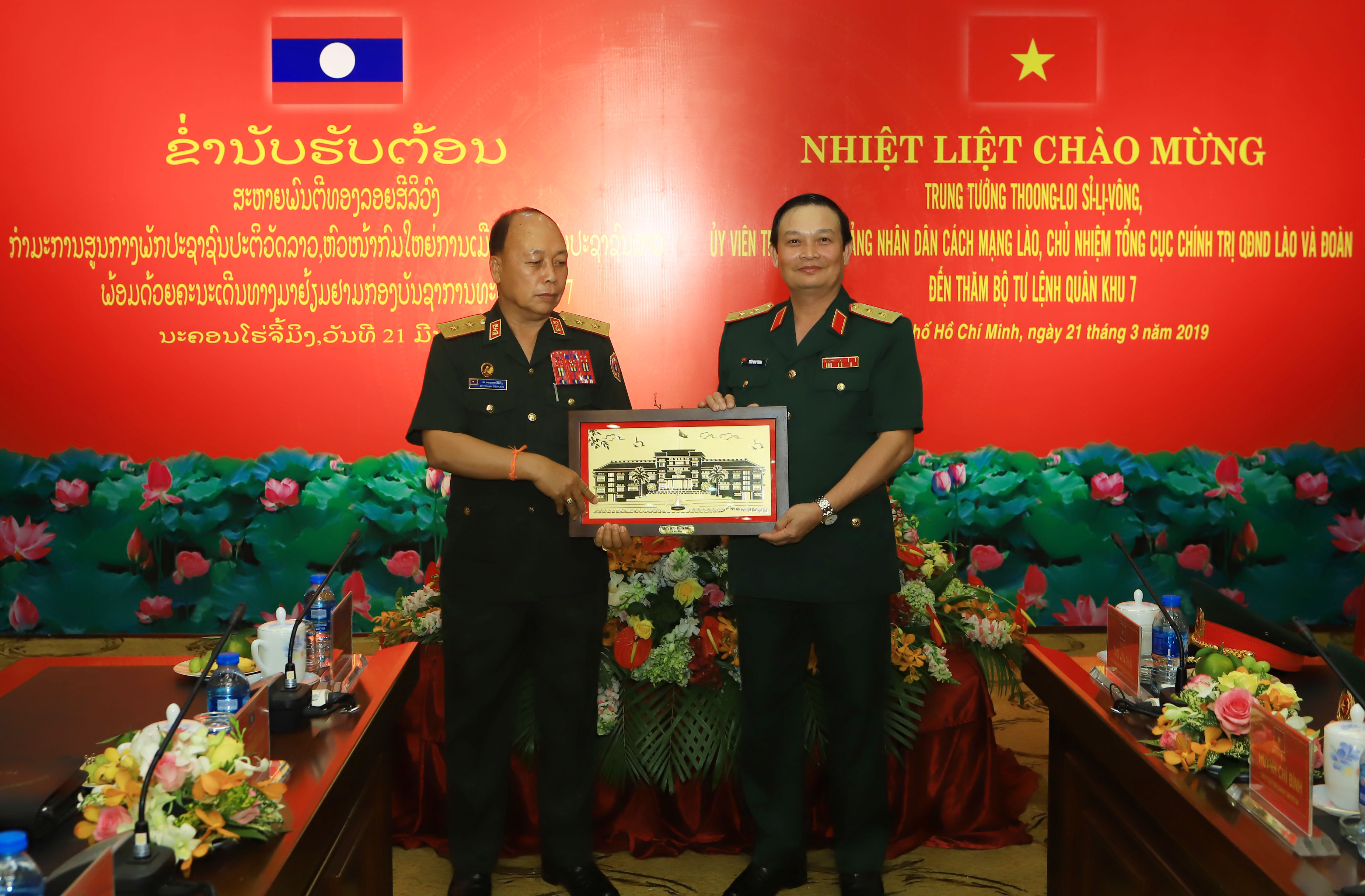 Trung tướng Thoong-loi Sỉ-lị-vong, Chủ nhiệm Tổng cục Chính trị QĐND Lào cảm ơn sự đón tiếp chu đáo, trọng thị, thắm tình đoàn kết mà Quân khu 7 giành cho đoàn. Đồng chí Chủ nhiệm Tổng cục Chính trị QĐND Lào mong muốn năm 2019, Quân đội Lào và Quân khu 7 sẽ tăng cường sự hợp tác toàn diện, trong đó chú trọng vấn đề trao đổi đoàn, giao lưu, học tập kinh nghiệm trong xây dựng lực lượng, xây dựng khu vực phòng thủ, vấn đề phát triển kinh tế gắn với củng cố quốc phòng-an ninh, tăng cường quan hệ quốc phòng-an ninh trong phòng chống “diễn biến hòa bình”. Đồng thời QĐND Lào tiếp tục kế thừa và phát huy mối quan hệ truyền thống, đoàn kết đặc biệt, hợp tác toàn diện giữa hai Đảng, hai Nhà nước, Nhân dân và Quân đội ngày càng phát triển.