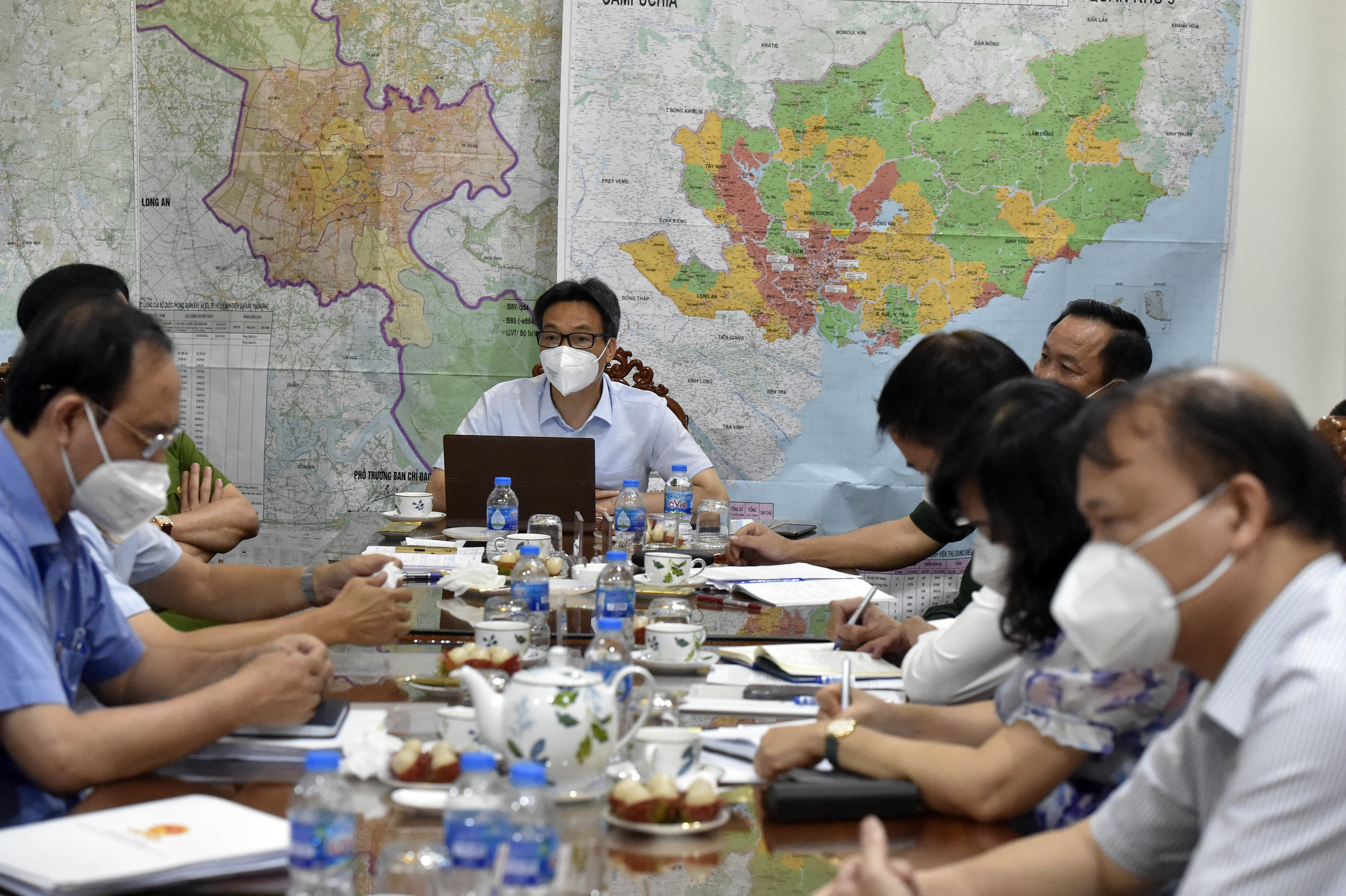 Phó Thủ tướng Vũ Đức Đam, Tổ công tác đặc biệt của Chính phủ thực hiện công tác phòng, chống dịch COVID-19 làm việc với lãnh đạo TPHCM chiều ngày 28/8. Ảnh: VGP/Đình Nam