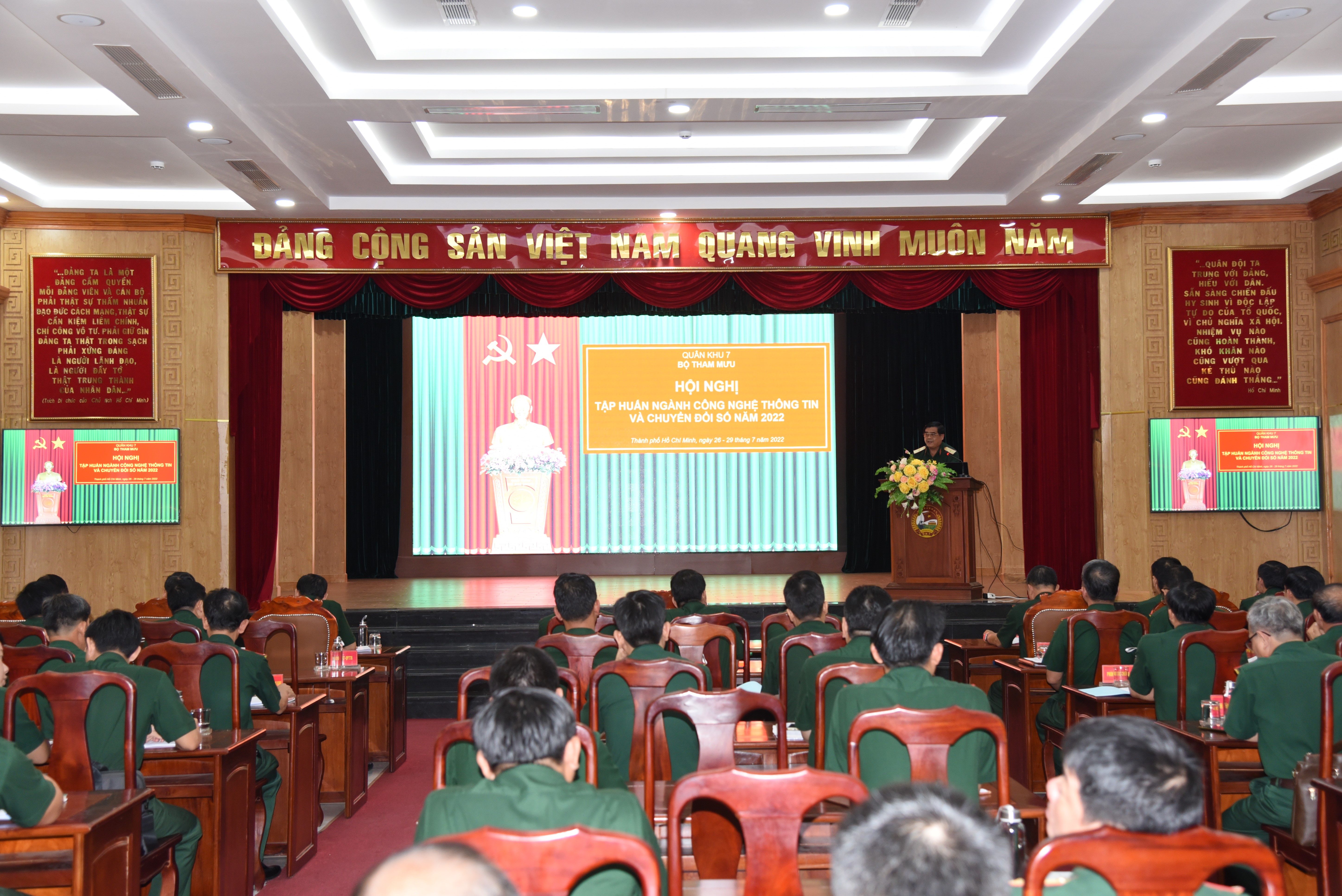 Thời gian tập huấn từ ngày 26 đến 29/7/2022. Đội ngũ cán bộ phụ trách ngành CNTT trong toàn Quân khu tập trung nghiên cứu các chuyên đề về: Chủ trương, định hướng, phương pháp tiếp cận chuyển đổi số, triển khai thực hiện chuyển đổi số tại đơn vị; một số vấn đề về công tác bảo đảm an toàn thông tin hiện nay; qui trình làm sạch máy tính trước khi đưa vào sử dụng, hướng dẫn xử lý mã độc; mô hình mạng quân sự an toàn mức cơ bản; cấu hình triển khai một mạng máy tính quân sự tại đơn vị, hướng dẫn cập nhật hồ sơ mạng, hướng dẫn cài đặt hệ điều hành an toàn, chuẩn đoán một số lỗi máy tính thông thường…