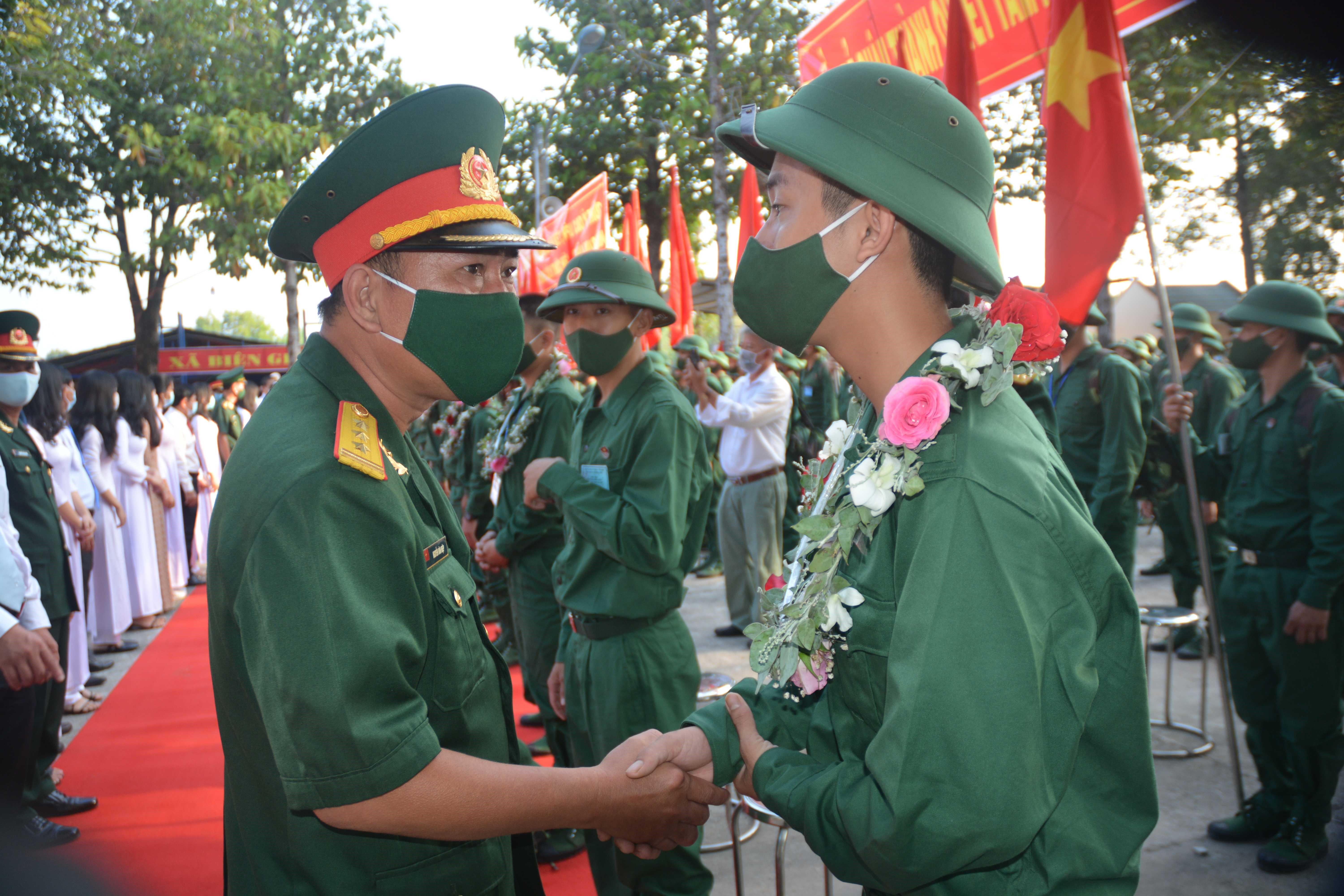 Lãnh đạo Bộ CHQS tỉnh động viên thanh niên lên đường nhập ngũ.