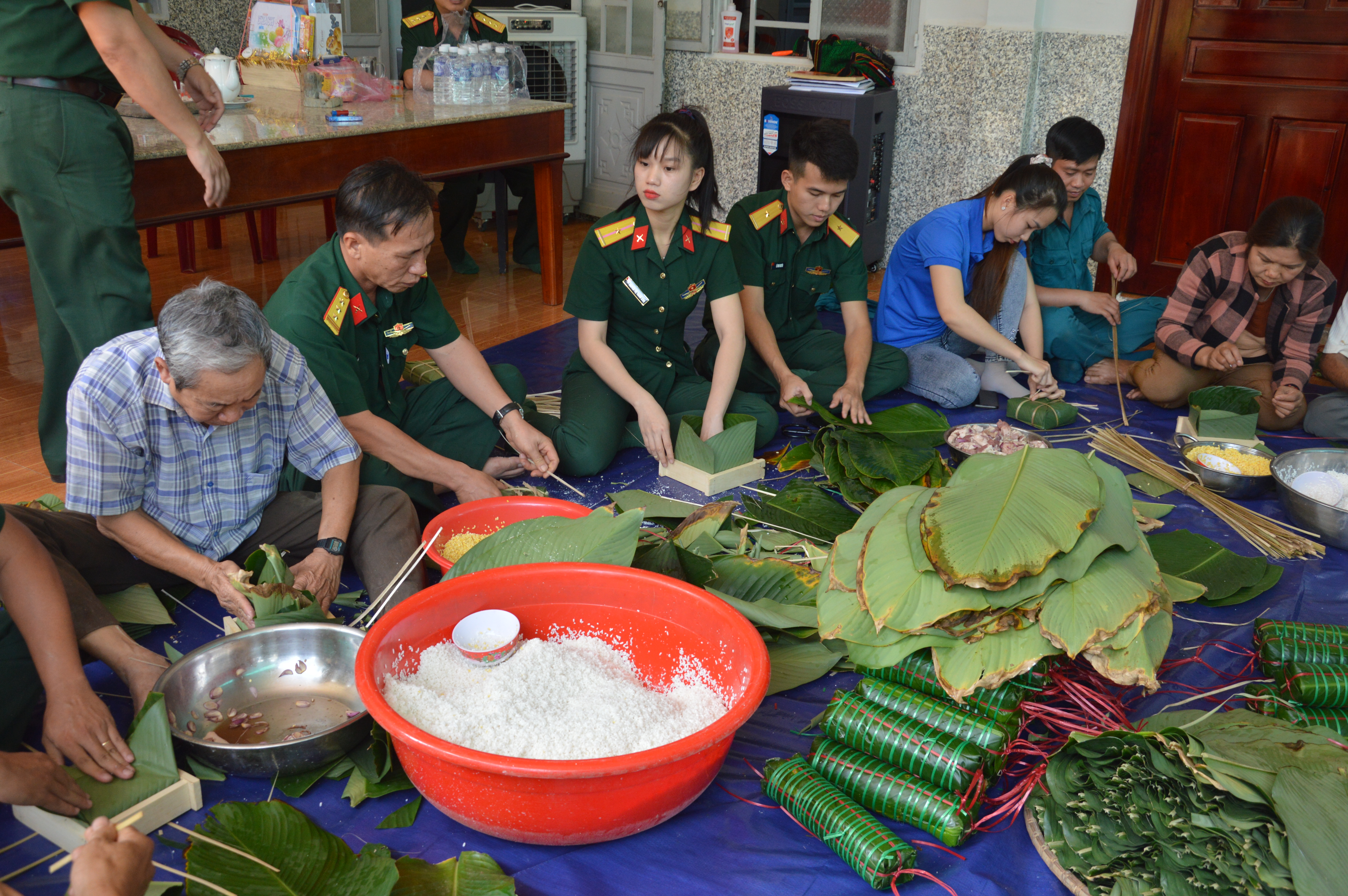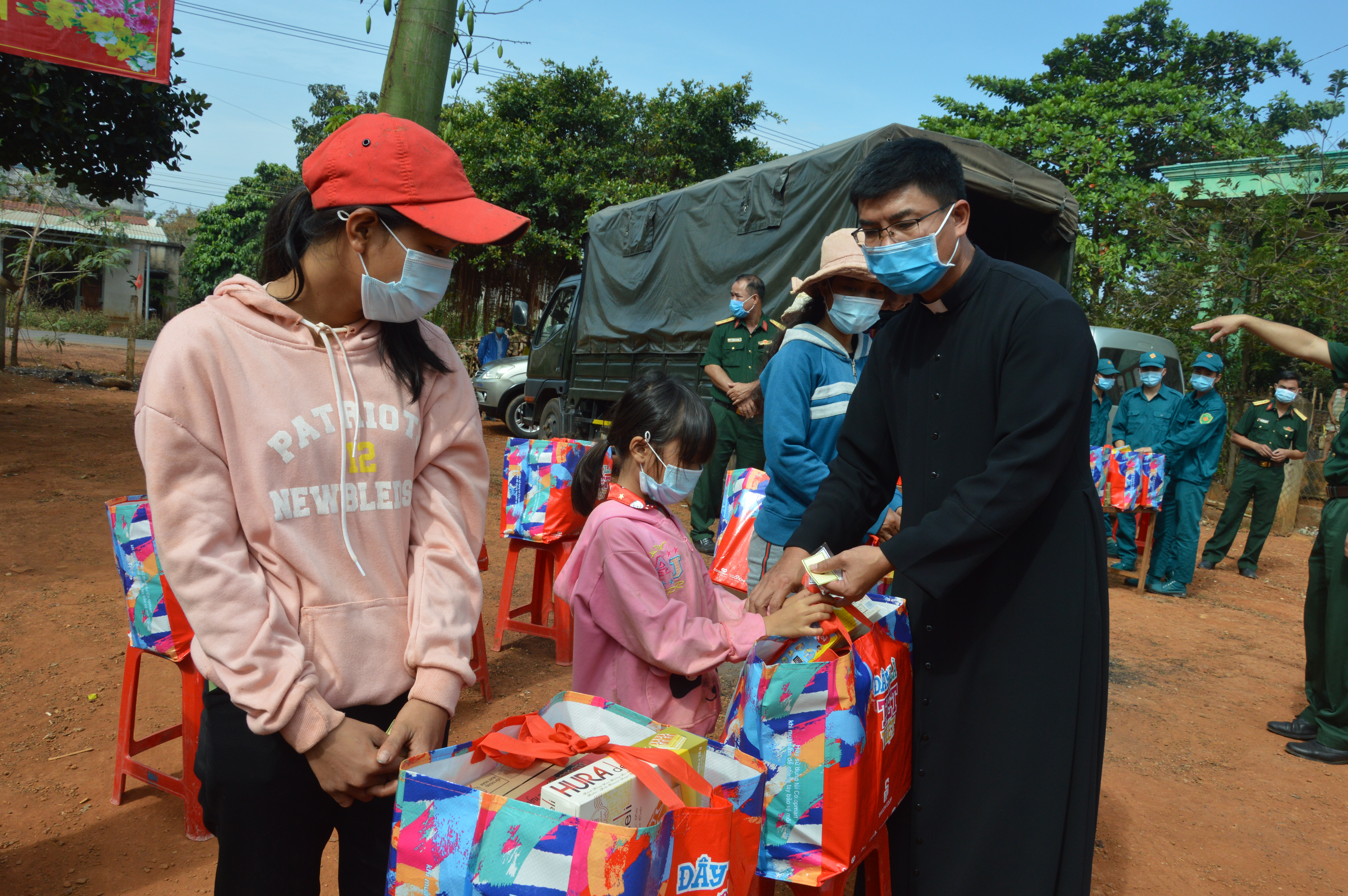 “Tết quân dân” Xuân Tân Sửu 2021 tại huyện Đồng Phú được tổ chức với 2 hoạt động chính: Gói bánh chưng, bánh tét và tặng quà giáo dân khó khăn, giáo dân là người dân tộc thiểu số.