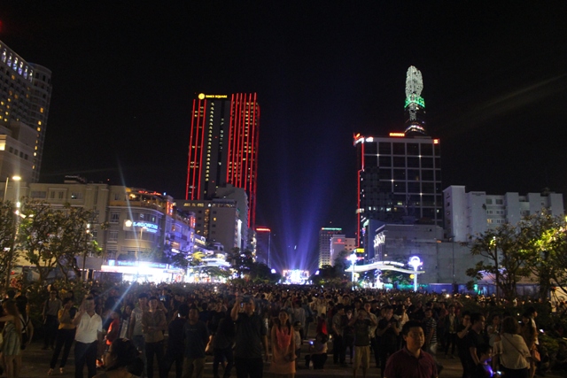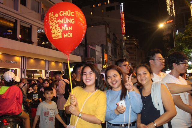 Theo ghi nhận của phóng viên, từ 18 giờ chiều ngày 31 tháng 12, dòng người đổ về trung tâm thành phố, các điểm vui chơi giải trí lớn ngày càng đông. Tại phố đi bộ Nguyễn Huệ, người dân, du khách khắp nơi hân hoan đón năm mới 2018. Chị Nguyễn Thu Trang (quận 5) cho biết: Đây là năm thứ hai chị cùng gia đình đến phố đi bộ Nguyễn Huệ để đón mừng năm mới. Đón năm mới ở ngoài cảm giác rất khác so với ở nhà. Ở đây không khí rất náo nhiệt. Mọi người dù không quen biết nhau, đến từ nhiều nơi khác nhau nhưng cùng chung một niềm vui đón chào năm mới với nhiều ước mơ, cầu mong gặp nhiều may mắn, dành cho nhau những lời chúc tốt đẹp”.