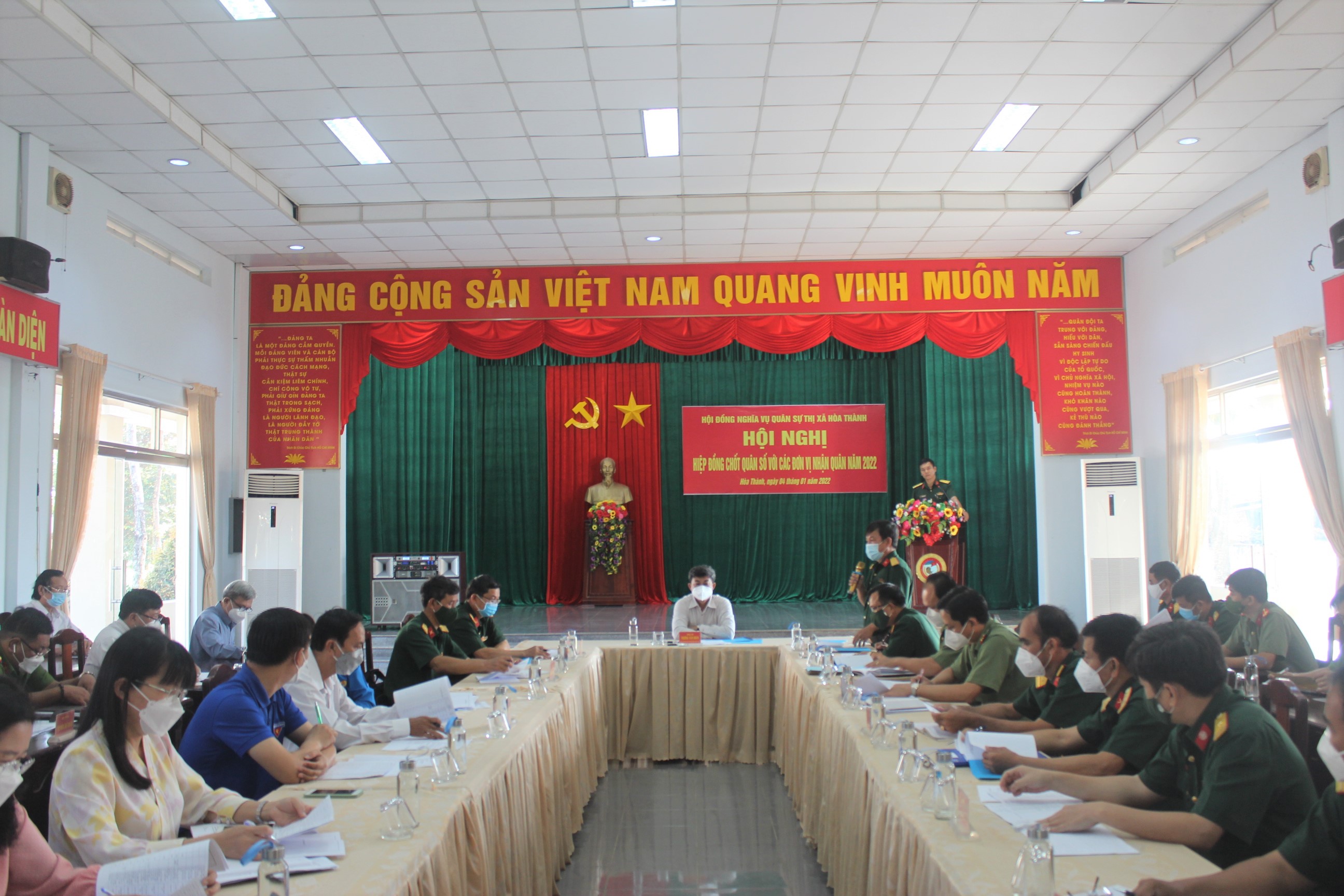 Năm 2022, thị xã Hòa Thành được UBND tỉnh giao chỉ tiêu tuyển chọn và gọi 235 công dân nhập ngũ vào các đơn vị thuộc Quân đội và Công an (Trong đó Quân sự 200, Công an 35) gồm: Sư đoàn 5, Lữ đoàn Thông tin 23, Bộ CHQS tỉnh và Công an tỉnh. Căn cứ chỉ tiêu của trên giao, Hội đồng Nghĩa vụ quân sự thị xã đã giao chỉ tiêu cho các xã, phường. Đến nay, Hội đồng NVQS thị xã đã triển khai khám tuyển sức khỏe cho thanh niên trong độ tuổi đủ điều kiện nhập ngũ, bảo đảm chất lượng, công khai, công bằng và đúng luật.