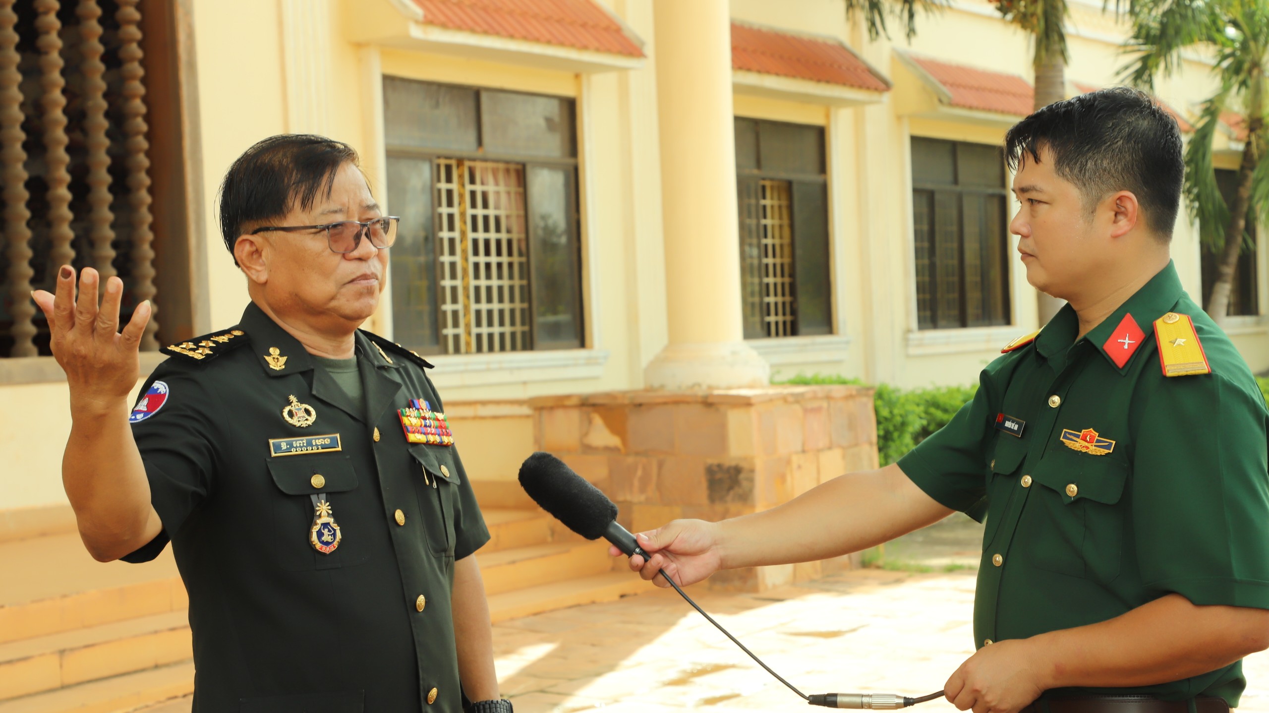 Thiếu tá, nhà báo Nguyễn Thế Anh phỏng vấn Đại tướng Pau Heng, Phó Tư lệnh Lục quân, kiêm Tư lệnh Quân khu 4, Quân đội Hoàng gia Campuchia. (Thực hiện tháng 6-2022). Ảnh: CTV