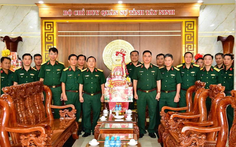 Thiếu tướng Lê Xuân Bình, Phó Tư lệnh, Tham mưu trưởng Quân khu và đoàn công tác Quân khu thăm, chúc Tết lãnh đạo tỉnh Tây Ninh.