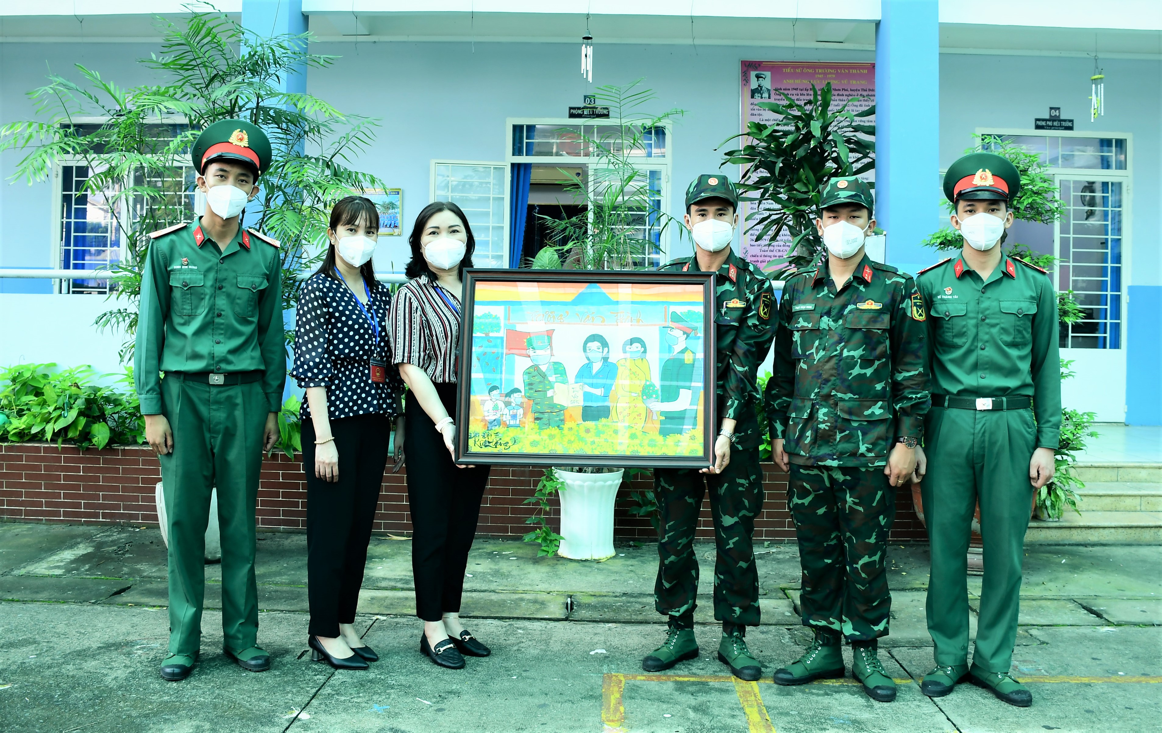 Cô Vũ Thị Nga, Hiệu trưởng Trường Tiểu học Trương Văn Thành, thành phố Thủ Đức xúc động: Quá trình giúp dân phòng, chống dịch, cán bộ, chiến sĩ Sư đoàn 5 được bố trí ở tại trường Trương Văn Thành. Chúng tôi rất trân trọng và cảm phục các anh bộ đội không quản ngày đêm, mưa nắng làm tất cả mọi việc để chống dịch, cứu dân. Tranh thủ những lúc ít việc, bộ đội còn hỗ trợ nhà trường tu sửa lớp học, dọn dẹp vệ sinh. Trước khi chia tay, các anh kì công vẽ bức tranh đẹp, ý nghĩa về tình quân - dân gửi tặng nhà trường.