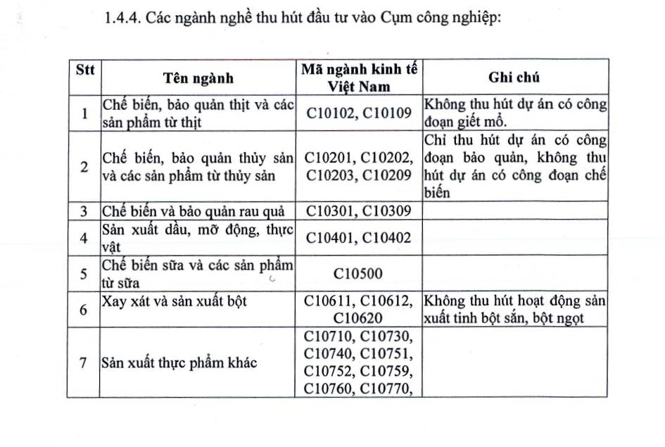 Danh mục ngành nghề thu hút đầu tư