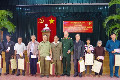 Trước đó đồng chí Thiếu tướng Du Trường Giang, Phó Tư lệnh Quân khu đã đến thăm và tặng 70 suất quà cho cho các hộ nghèo, gia đình chính sách thuộc 2 huyện Đam Rông, Đạ Tẻh (trong đó huyện Đam Rông 50 suất, huyện Đạ Tẻh 20 suất), bình quân mỗi suất quà trị giá 500 ngàn đồng và 100 phần quà, mỗi phần trị giá 300 ngàn đồng cho chiến sĩ dân quân và lực lượng DBĐV trên địa bàn huyện Đam Rông.