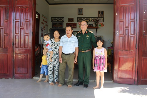 Thiếu tướng Du Trường Giang chụp hình lưu niệm với vợ chồng con trai cụ Tô Đình Cắm.
