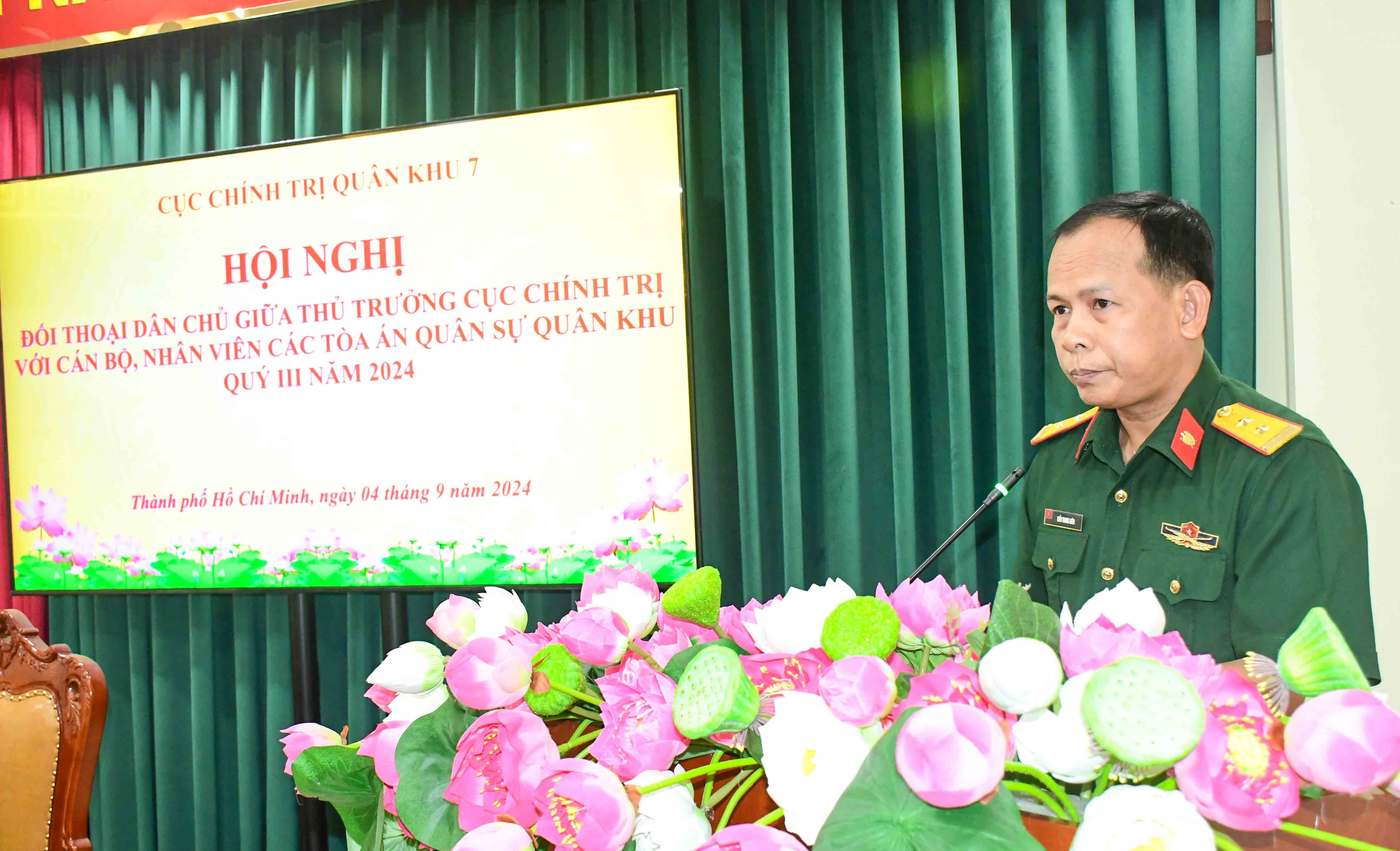 Thủ trưởng Cục Chính trị Quân khu 7 đối thoại dân chủ với cán bộ, nhân viên Tòa án Quân sự Quân khu