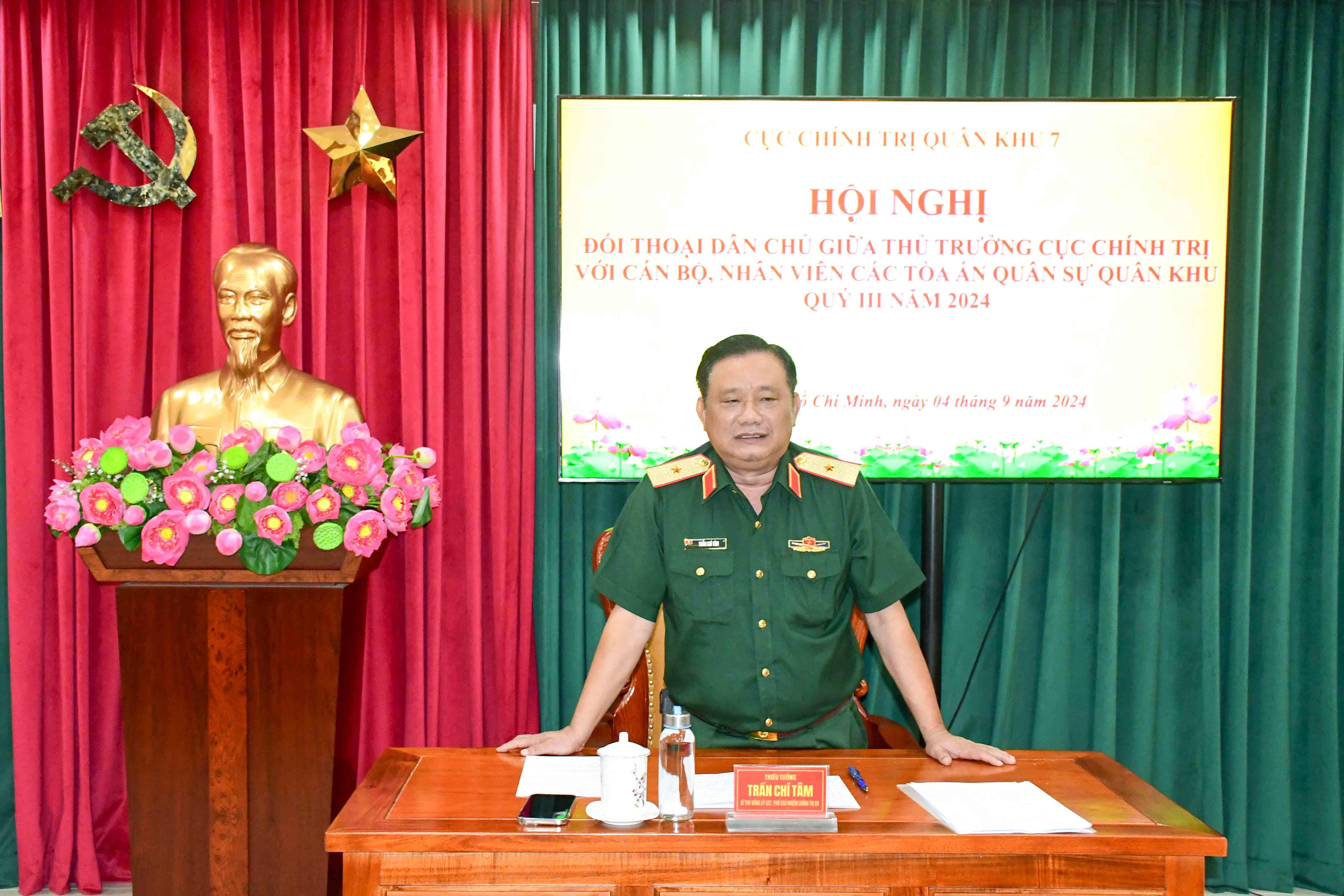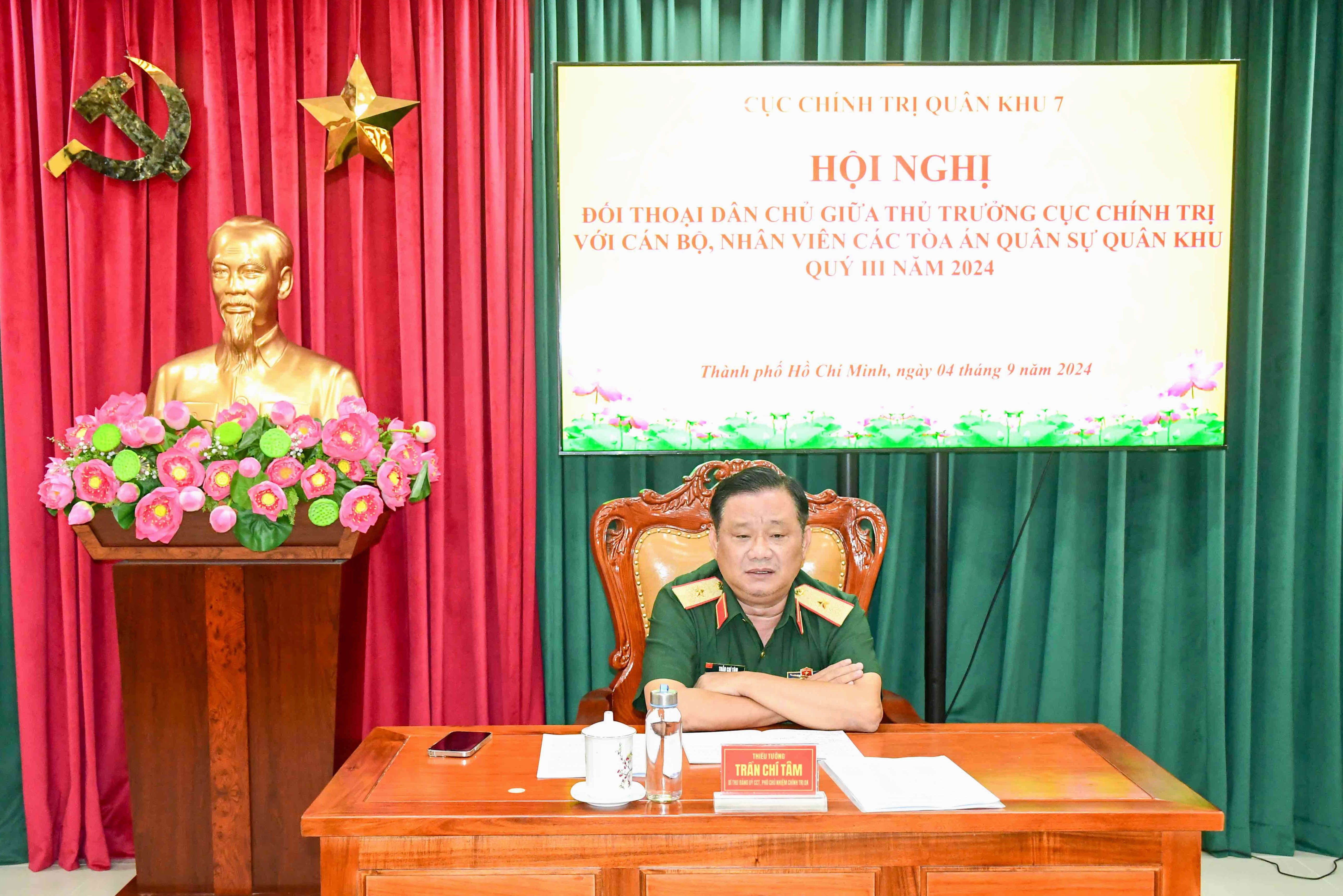 Tại buổi đối thoại, Thiếu tướng Trần Chí Tâm, Bí thư Đảng ủy Cục Chính trị, Phó Chủ nhiệm Chính trị Quân khu nhấn mạnh một số nội dung về dân chủ quân sự, chính trị, hậu cần, đời sống, các chế độ chính sách, công tác cán bộ, việc duy trì chế độ, nền nếp và mối quan hệ công tác, quan hệ cấp trên, cấp dưới ở đơn vị; việc phát huy dân chủ trong hoạt động lãnh đạo của cấp ủy Đảng, quản lý điều hành của người chỉ huy và dân chủ thông qua hoạt động của Hội đồng quân nhân. Trọng tâm là những tâm tư, nguyện vọng, băn khoăn của cán bộ, nhân viên trong việc xây dựng và thực hiện quy chế dân chủ cơ sở, các vấn đề có liên quan.