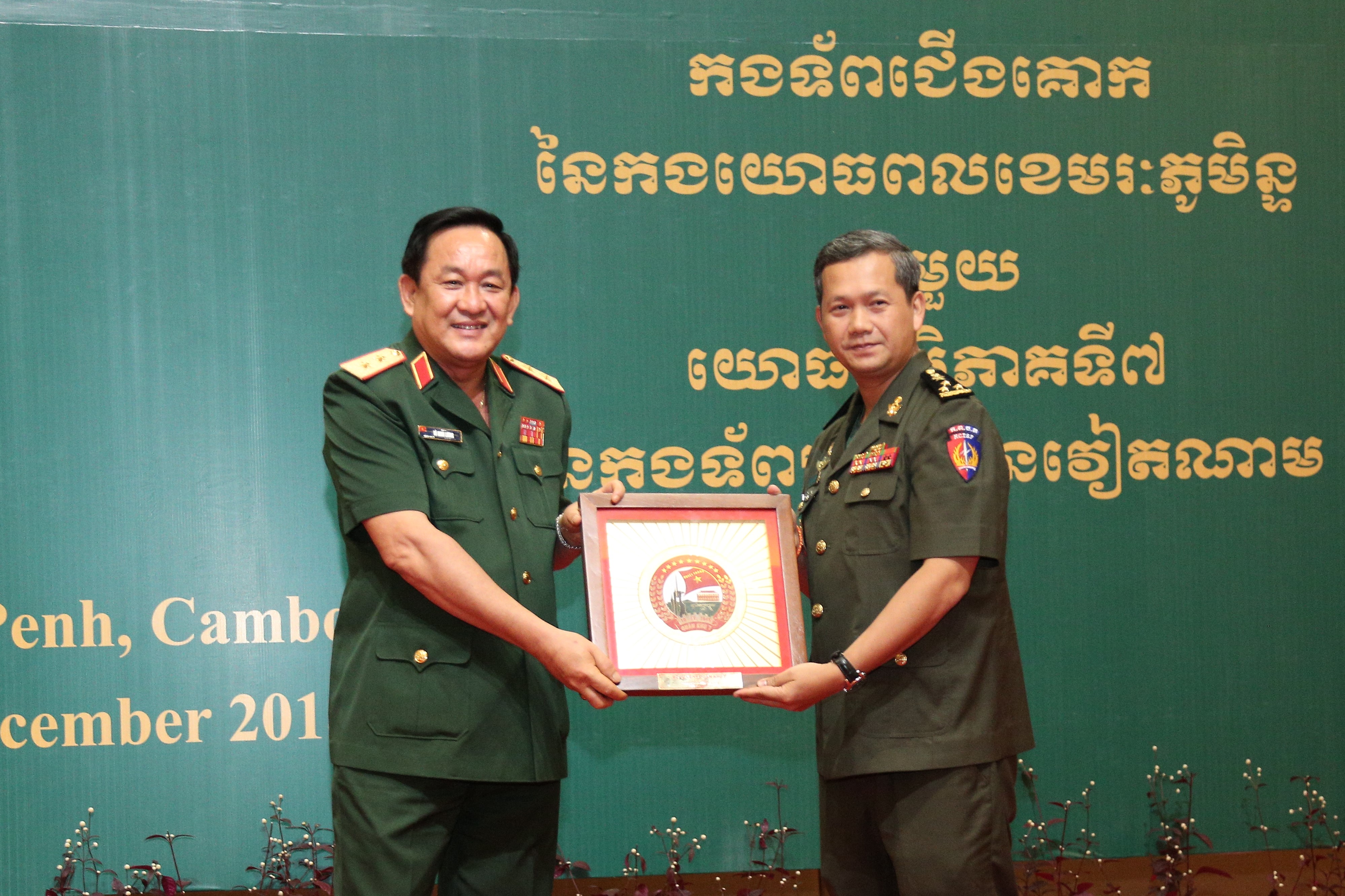 Thay mặt đoàn công tác, Trung tướng Võ Minh Lương, Tư lệnh Quân khu 7 bày tỏ vui mừng trước sự phát triển lớn mạnh của đất nước Campuchia. Đồng chí Tư lệnh Quân khu 7 gửi lời chúc mừng tốt đẹp nhất đến Thủ tướng Sămdec Techo Husen cùng lãnh đạo Đảng nhân dân Campuchia, Chính phủ và Quân đội Hoàng gia Campuchia.