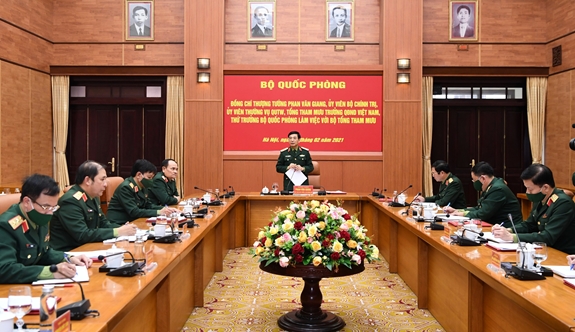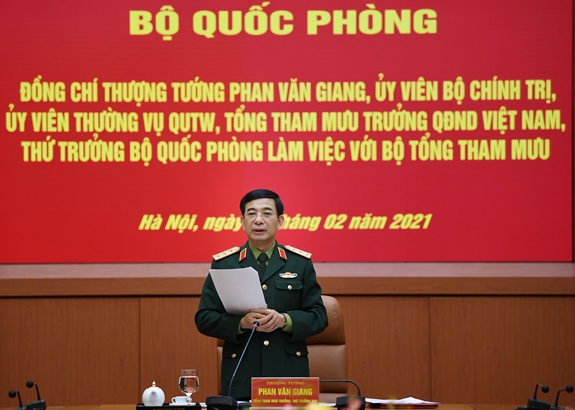 Trên cơ sở phân tích tình hình thế giới, khu vực và trong nước thời gian tới và yêu cầu nhiệm vụ của quân đội, Thượng tướng Phan Văn Giang chỉ đạo BTTM phải tiếp tục quán triệt, triển khai, thực hiện nghiêm túc đường lối, chủ trương của Đảng, chính sách, pháp luật của Nhà nước về nhiệm vụ quân sự, quốc phòng, xây dựng và bảo vệ Tổ quốc trong tình hình mới; nhất là Nghị quyết Đại hội lần thứ XIII của Đảng, Nghị quyết Đại hội Đảng bộ Quân đội lần thứ XI và Nghị quyết của Quân ủy Trung ương về lãnh đạo nhiệm vụ quân sự, quốc phòng, xây dựng Đảng bộ Quân đội năm 2021.