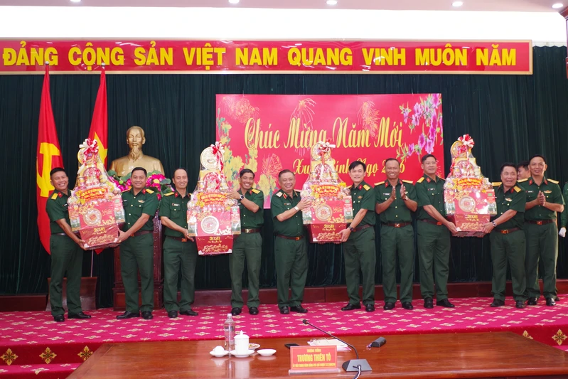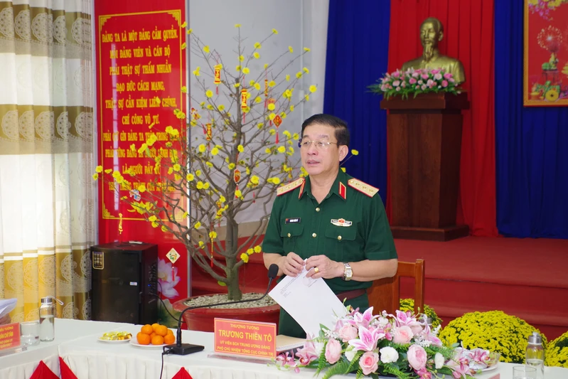 Thượng tướng Trương Thiên Tô, Ủy viên Ban chấp hành Trung ương Đảng, Phó Chủ nhiệm Tổng cục Chính trị Quân đội Nhân dân Việt Nam kiểm tra, thăm, chúc Tết tại Sư đoàn 5.