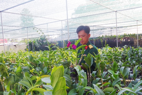 Ngoài ra với sự khéo léo, cần cù và niềm đam mê trồng hoa lan, Thượng úy QNCN Nguyễn Thanh Hiển đã góp phần xây dựng cảnh quan đơn vị. Dù đóng quân trong nội đô thành phố Tân An, khuôn viên doanh trại nhỏ, nhưng Đại đội Trinh sát vẫn có “mảng không gian xanh” khá đẹp mắt, dưới trồng rau cải, trên thả giàn đậu rồng, bầu, bí…vừa tạo cảnh quan, vừa có sản phẩm sạch quanh năm đưa vào bếp ăn cho bộ đội. Đây còn là nơi thư giản cho cán bộ, chiến sĩ sau giờ học tập, rèn luyện vất vả. Nhưng có lẽ ấn tượng nhất là vườn hoa phong lan đủ sắc màu với nhiều chủng loại và cái tên khá đài cát. Đặc sắc nhất là những giò lan treo được ghép trên thân gỗ khá độc đáo. Đây là tác phẩm của đồng chí Nguyễn Thanh Hiển. Để góp phần tạo cảnh quan đơn vị, anh còn mang những giò hoa lan của nhà mình vào. Vốn rất đam mê trồng lan, thêm sự cần cù, khéo léo, tranh thủ giờ nghỉ là Hiển lao vào chăm sóc hoa, tỉa cành, ươm giống góp hoa lan.