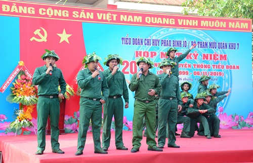 (QK7 Online) - Ngày 6/11, Tiểu đoàn Chỉ  huy Pháo binh 10 – Bộ Tham mưu Quân khu 7 tổ chức họp mặt kỷ niệm 20 năm Ngày Truyền thống (6/11/1999 – 6/11/2019). Về dự buổi lễ có Thiếu tướng Lê Bửu Tuấn - Phó Tư lệnh, Tham mưu trưởng Quân khu 7; Thủ trưởng các cơ quan Quân khu; Thủ trưởng Bộ Tham mưu Quân khu và lãnh đạo, chỉ huy Tiểu đoàn qua các thời kỳ.
