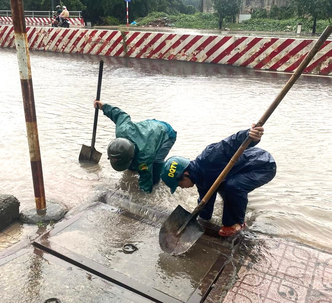 LLVT thành phố Tân Uyên khơi thông miệng thu nước chống ngập úng.