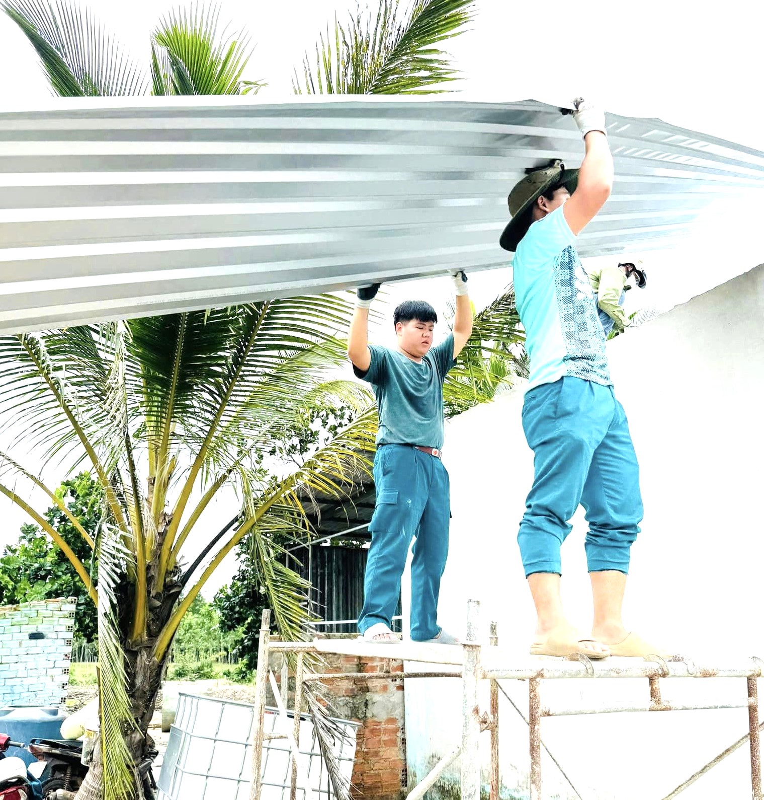 LLVT huyện Dầu Tiếng giúp người dân lợp lại mái nhà do dông lốc.
